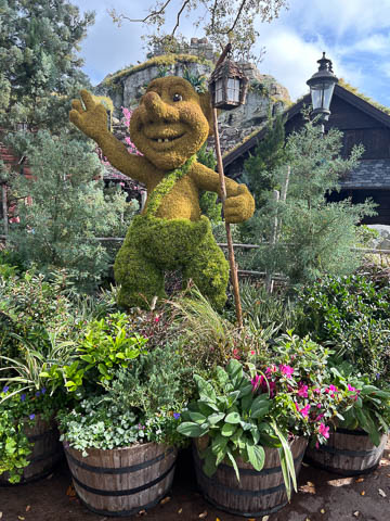 We loved the topiaries scattered around the park. Here are a troll and Frozen figures at Norway.