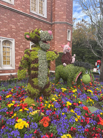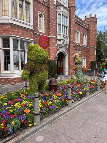 We then headed back around the World Showcase counter-clockwise. Loved the gardens and Winnie the Pooh topiaries in the England pavilion.