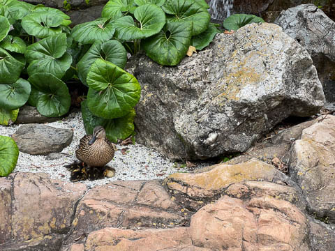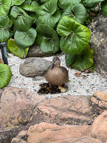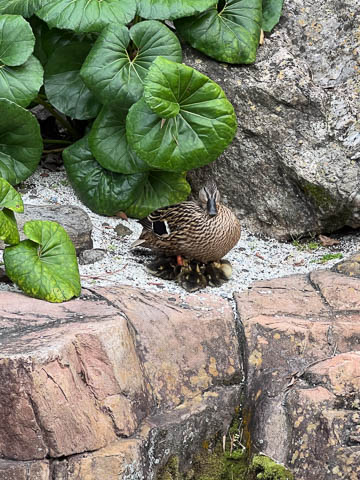 There was a mother duck sheltering her hatchlings in one of the small gardens. Unfortunately, she was gone when we came back the next night to show the girls.