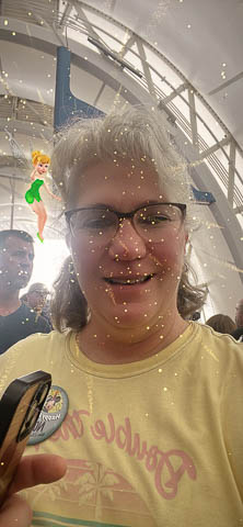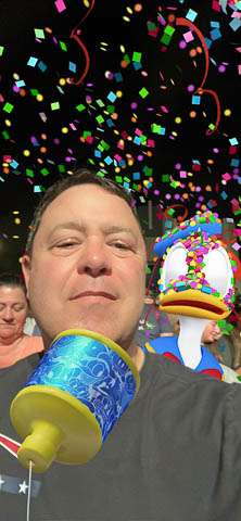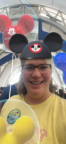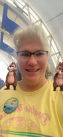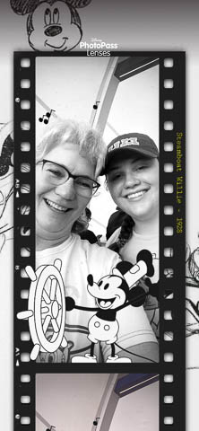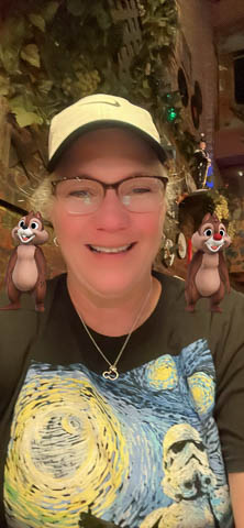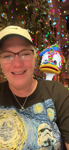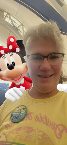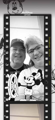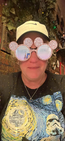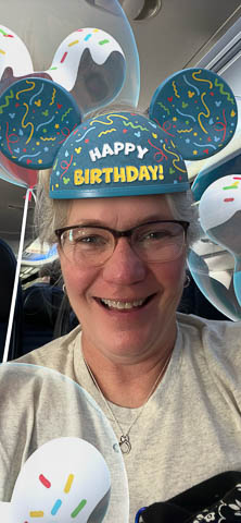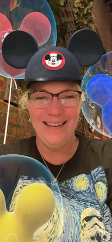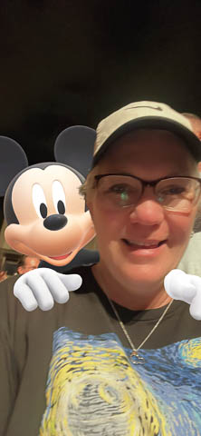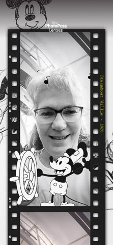 March 2024 (Part 05) Walt Disney World Vacation Day: PhotoPass Lenses Disney's PhotoPass app allows you to take selfies with several custom lenses. We played with this over the week. Had to save several of the pictures. As it was her birthday on Sunday, had to lead off with Nancy's picture in birthday Mickey ears.