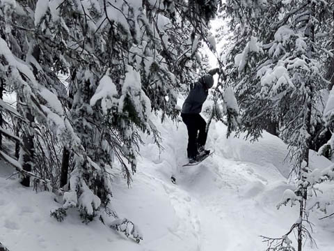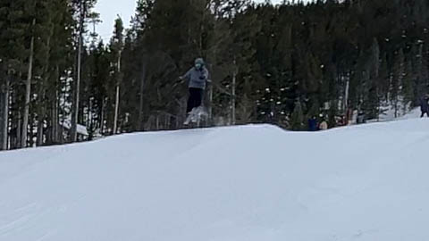 The boys had some fun in the terrain park toward the end of the day. At least until Andy landed badly and broke his binding, forcing him to ski to the bottom on one ski.
