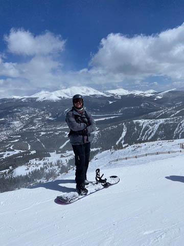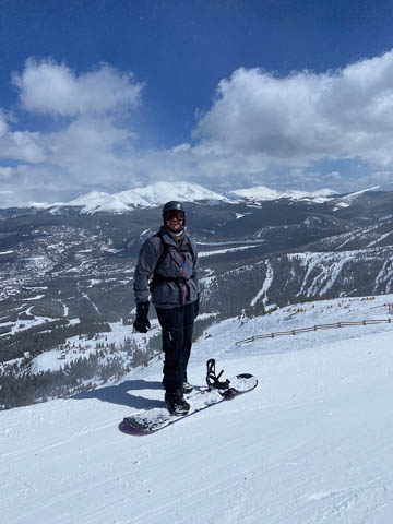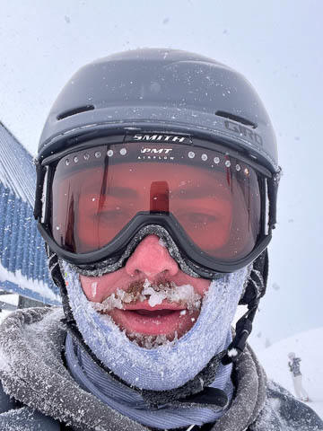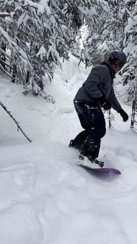 It snowed a bit more on Thursday, but the sky cleared in the afternoon. Lily was able to get Andy a free rental, which allowed him to ski for the first time since early high school.