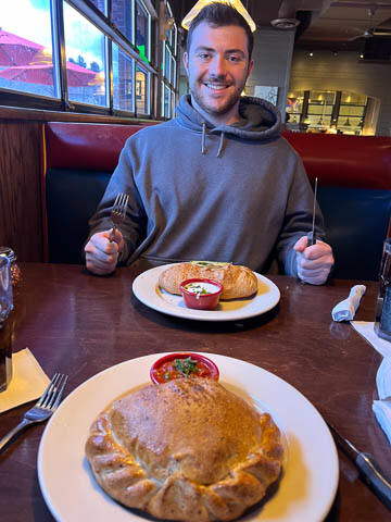 March 2024 (Part 08) Skiing Trip To Colorado Steve met up with Andy in Denver for his spring break, stopping for lunch first at Old Chicago's and sending jealous image. They also stopped at the Breckenridge Brewery in the middle of the week and jokingly sending the picture to our neighbor Sal, asking where he was, as we had amazingly run into him there several years ago before COVID.