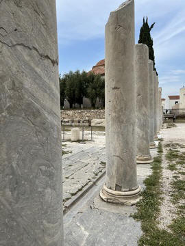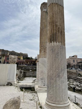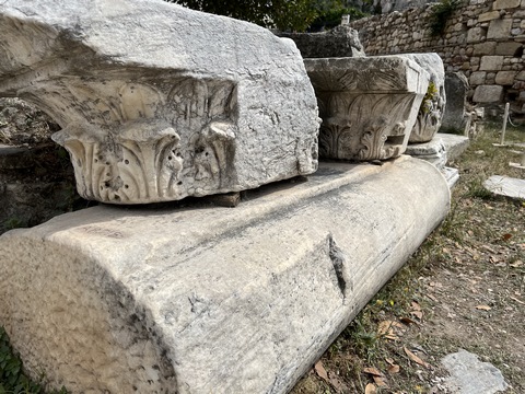 These columns (and much of the ones on the ground) were from the library and are what remains of over 100 marble columns originally in the structure.
