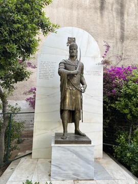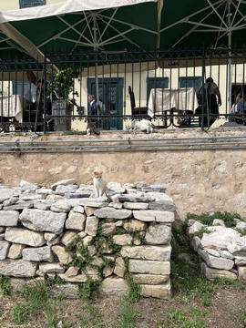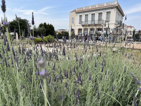 We wandered north-east to the Metropolitan Cathedral of Athens, officially called the Holy Metropolitan Church of the Annunciation to the Virgin Mary. This is the cathedral church of the Archbishopric of Athens and all of Greece, It was constructed between 1842 and 1862. Inside are the tombs of two saints killed by the Ottoman Turks during the Ottoman period: Saint Philothei and Patriarch Gregory V. We discovered an impossibly long line, with the queue several people wide and stretching around the square and then down the block. We later learned there was a relic that people were making pilgrimages to see and touch (although we couldn't find any information online about what the relic was). This statue on the west-side of the square depicts Constantine XI Palaeologus (1404-1453), the last emperor of the Eastern Roman Empire. He was killed defending Constantinople from the Ottomans and is considered the last Greek king and is an unofficial saint.