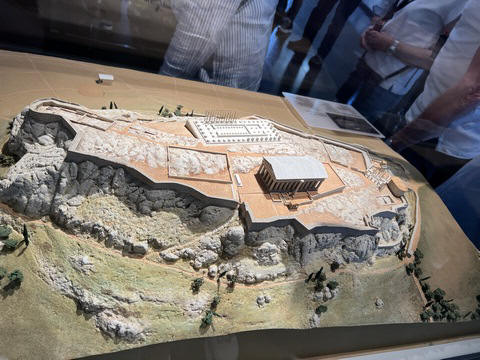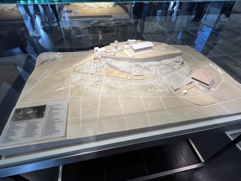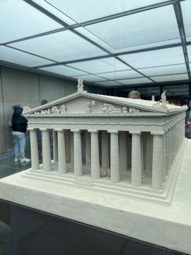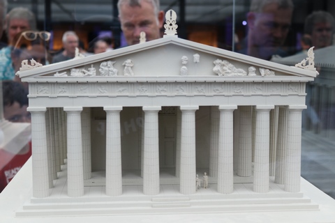 This model of the west pediment shows Athena and Poseidon competing for Athens'