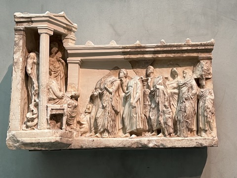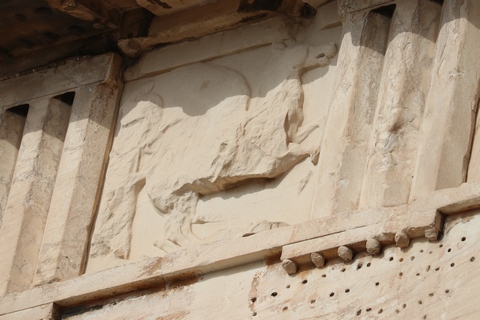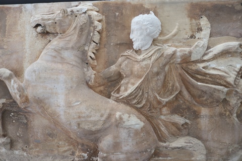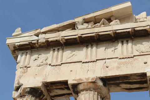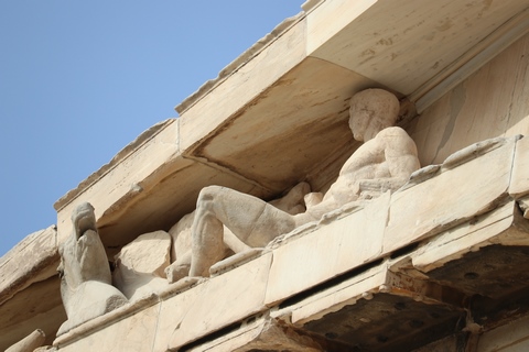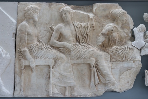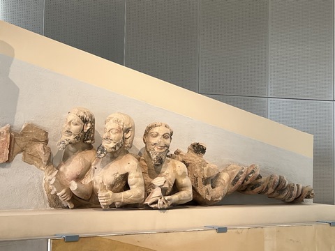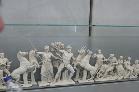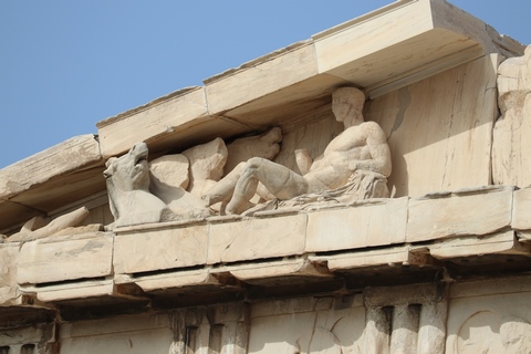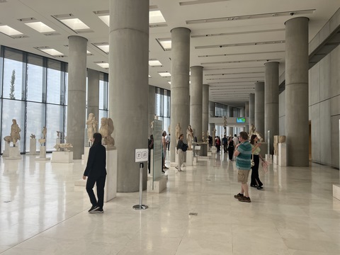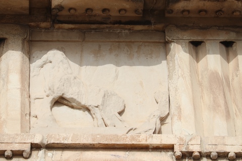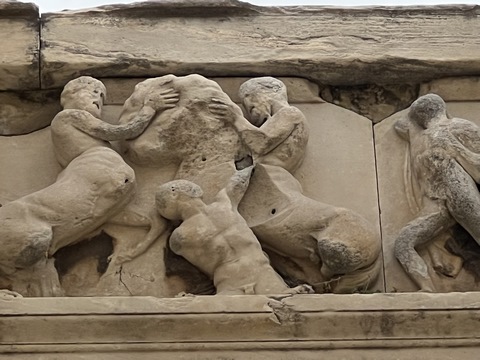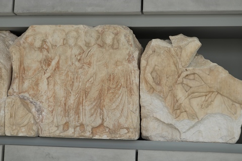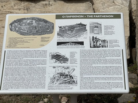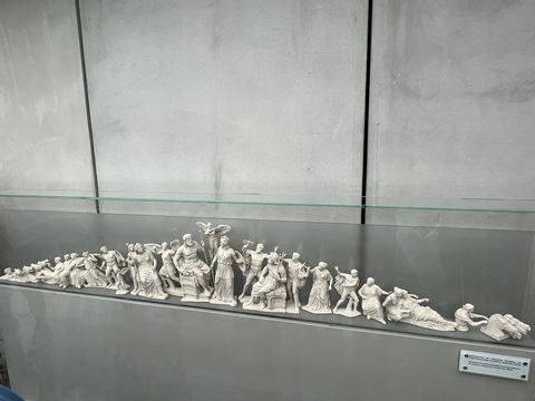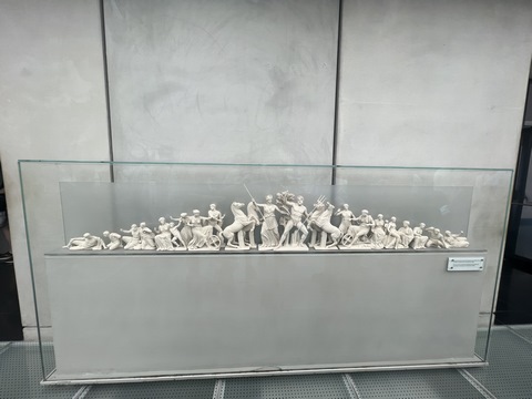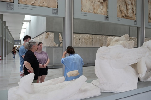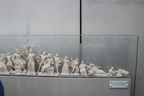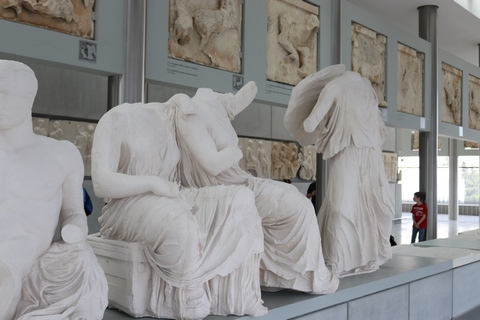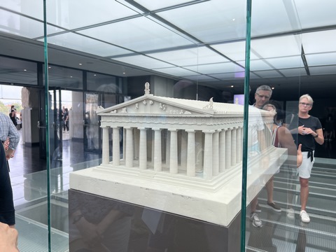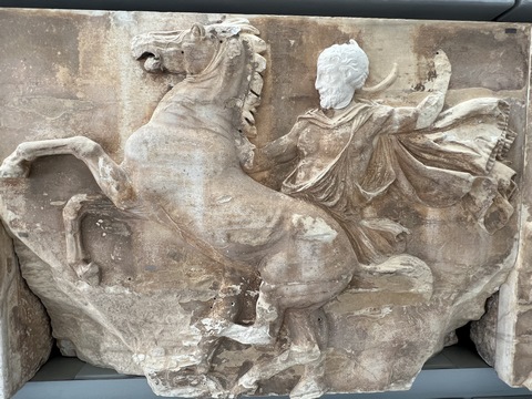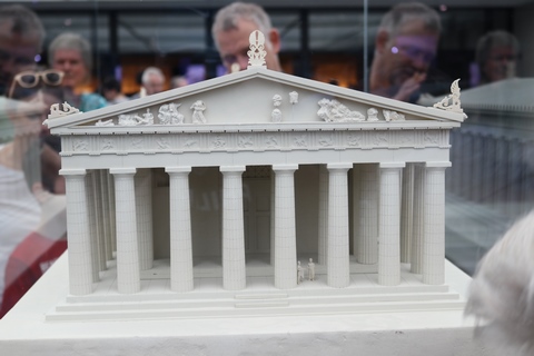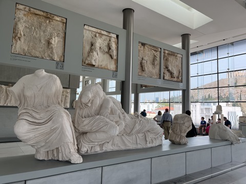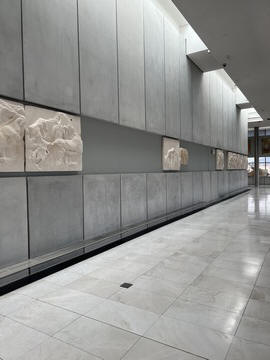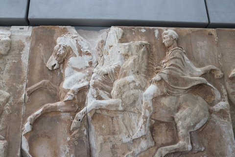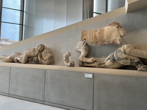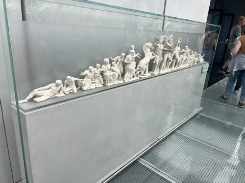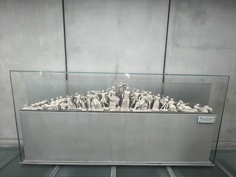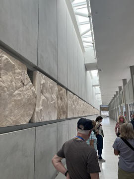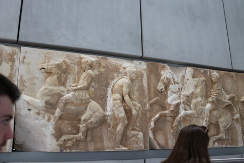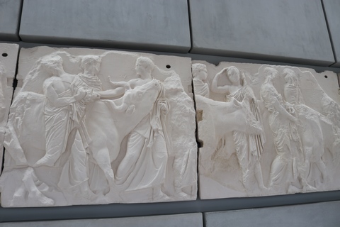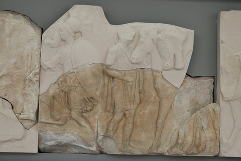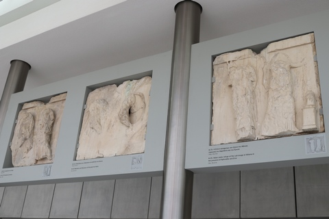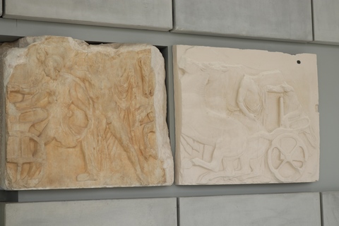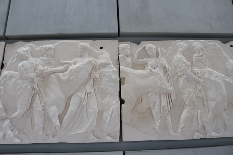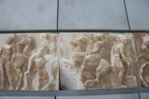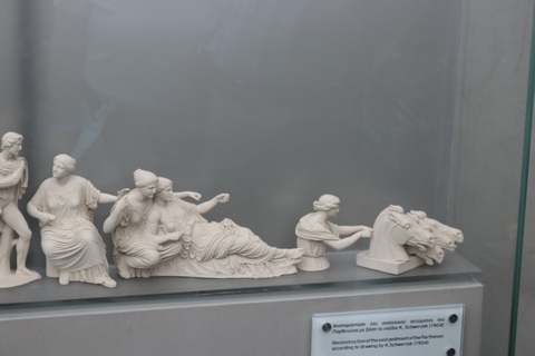 Parthenon (although they are mounted lower for easier viewing). The friezes are shown with the originals, visible by their