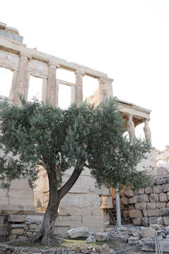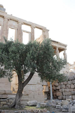 Athena presents an olive tree (behind the two of them). A big, heavenly