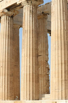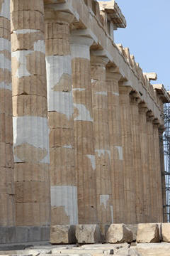 wealth into a massive building program to erect new temples. Led by the architect/sculptor Pheidias and Ictinus and Callicrates, two famous architects, the Athenians transformed the Acropolis into a complex of super-sized,