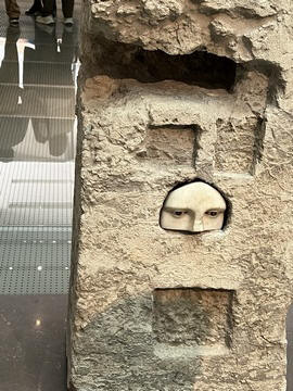 Some of the panels have holes, where gleaming bronze reigns and other items were