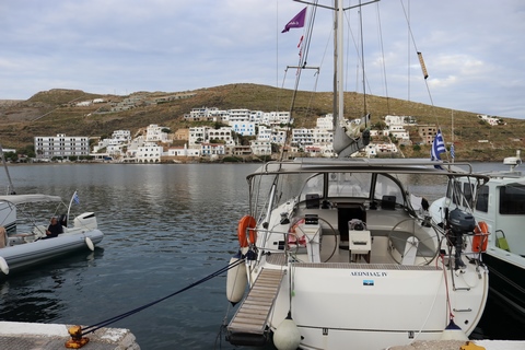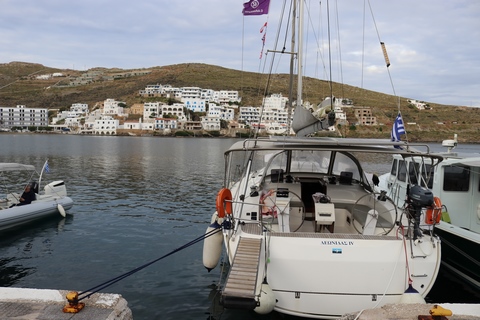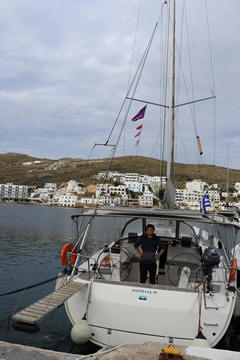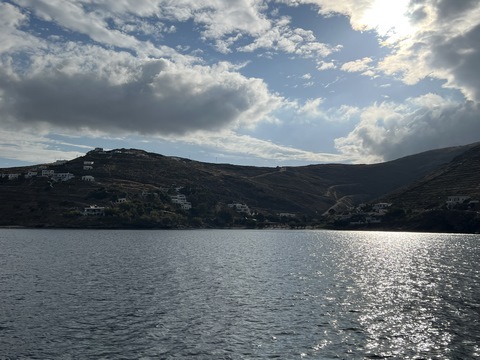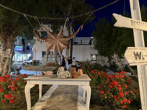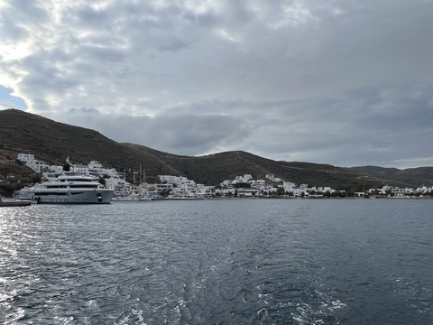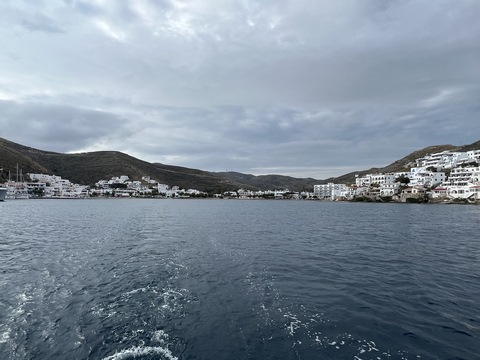We wound up back at the harbor with a bit of time to wander before making our way to the Byzantio Yalos restaurant for dinner, which had a small and wonderful covered seating area on the sand right in the harbor. We then went to another wine bar. While we headed to bed, Andy and the others stayed for a couple more drinks. Apparently George came by later and joined them on the boat for a long discussion.
