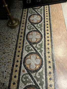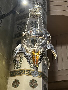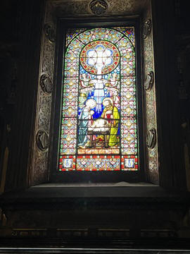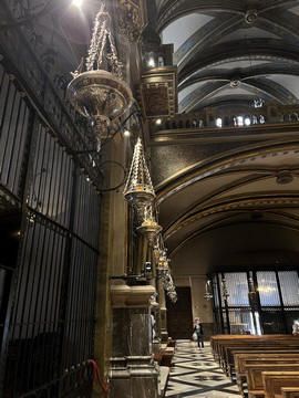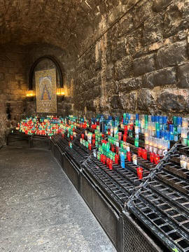 There were several small chapels lining the walls, each with amazing stained glass windows, and a row of different and amazing lights in front of them. There were signs explaining that the lights were donated by individuals, groups and churches from the surrounding area.