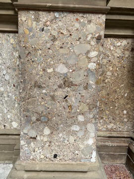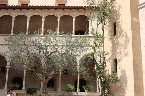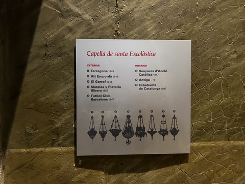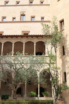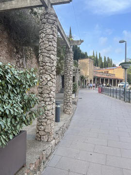 This facade precedes the church proper, which is access by entering through the doors and then across a small atrium. Here there are 16th century sepulchres (tombs in the rock face) and more recent 20th century sculptures. The square that precedes the church (called del Abat Argeric, built in 18th century) is decorated with sgraffitos (layered tinted plaster) decorations.