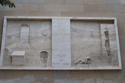 On the way in, we passed the statue of Sant Jordi, de Josep Maria Subirachs (Saint George by Josep Maria Subirachs). This was done by the same sculptor as much of the Passion Facade at Sangrada Familia and shows some of the reverse imaging used there also.