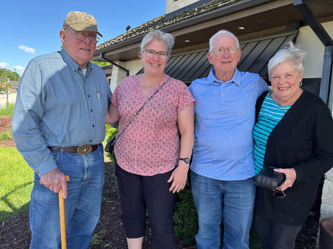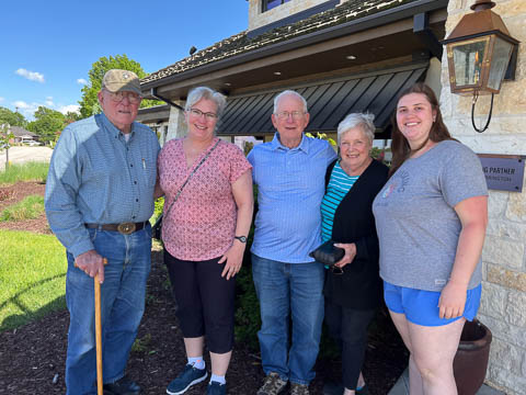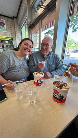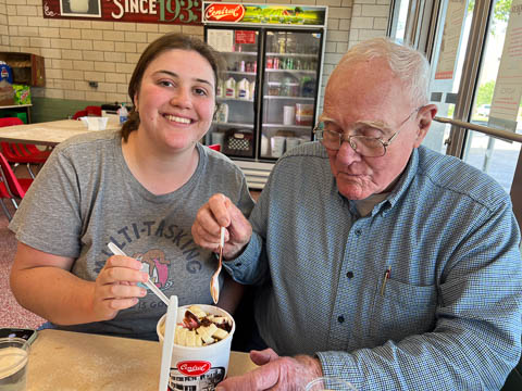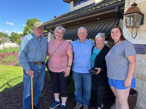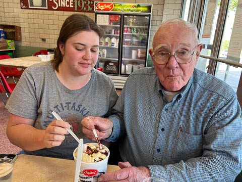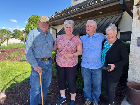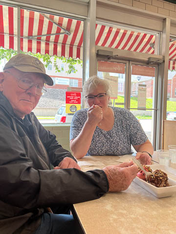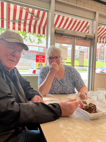 May 2024 (Part 02) Spring Trip to Missouri From Chicago, we headed to Missouri to see Grandpa Bill. We flew into Columbia, which allowed us a chance to see the Boston's for lunch. When asking where to go, Nancy said she was thinking of Shakespeare's. Well, Bill was thinking of Checkers. So guess where we went.