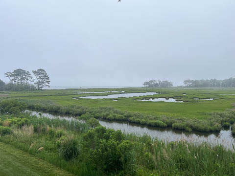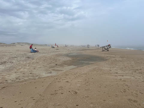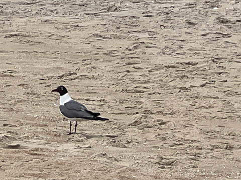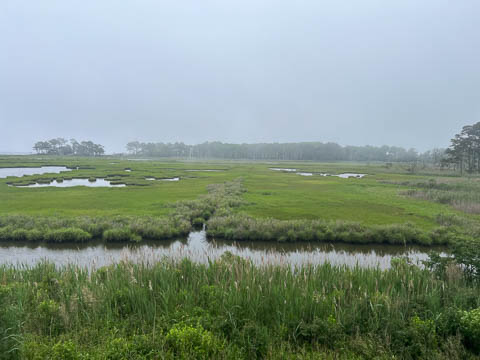 When we went back out on Sunday, the eagle wasn't to be seen. On our way back, the marine layer that was over the beach had come inland and now covered much of the bay. We couldn't see far enough to feel safe and quickly headed west toward our home, glad to get out of the fog soon. However, this meant any plans to ride for a while were now ended. We heard later that the lifeguards had pulled people out of the water as they couldn't see the swimmers. The next morning when we went to the beach, it was still hazy but a bit better. The lifeguards were having to pace between their towers to ensure they could see all areas under their charge.