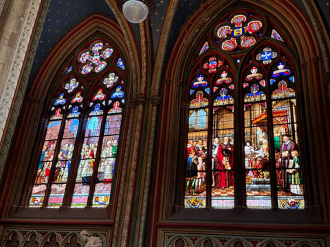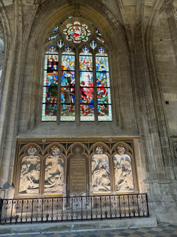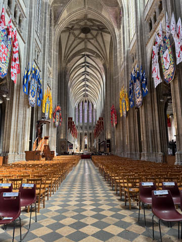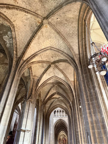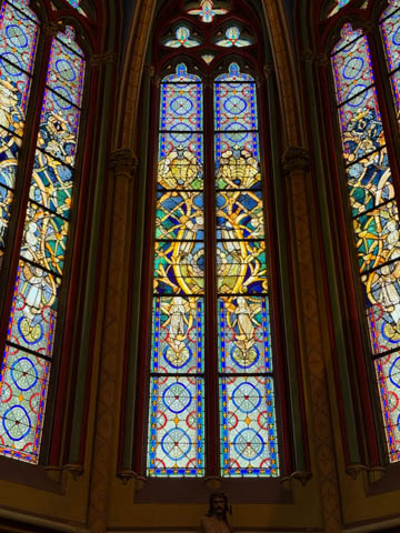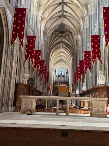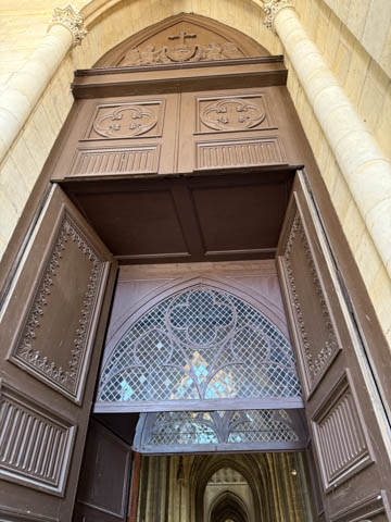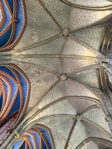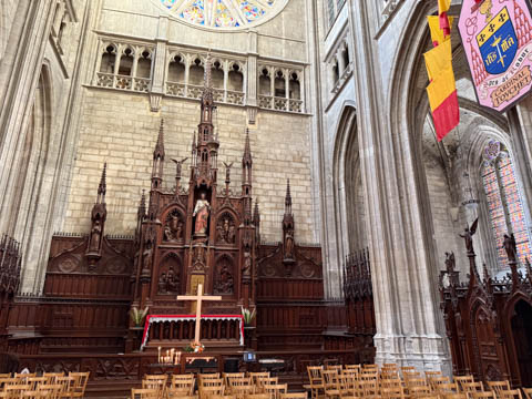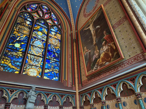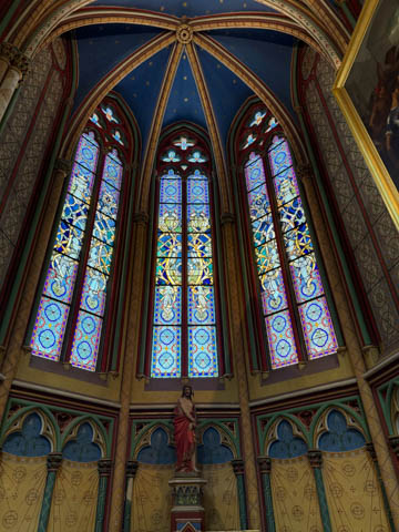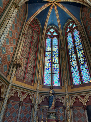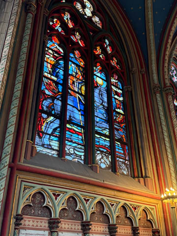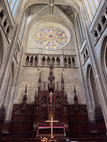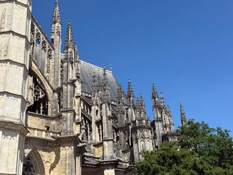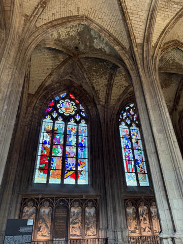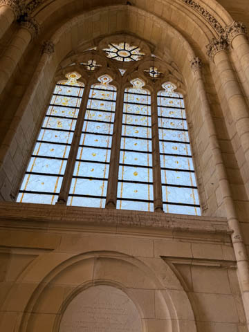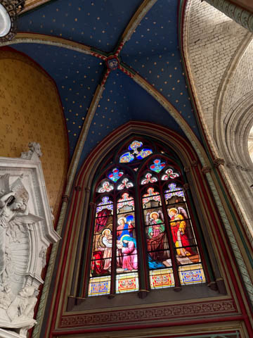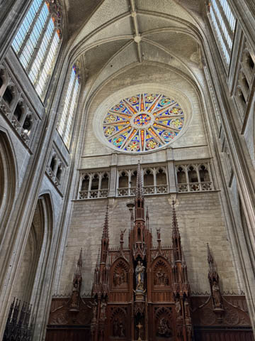 Due to damage from World War II and the Wars of Religion, most of the cathedral’s stained glass with the exception of the rose windows date from the 19th century