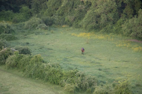 Had to wave at the horse below and admire the sunrise striking the morning mist to the east.