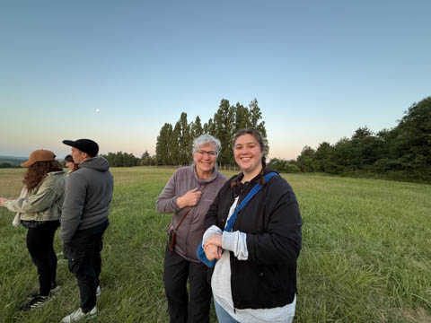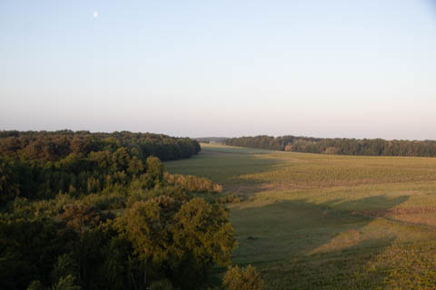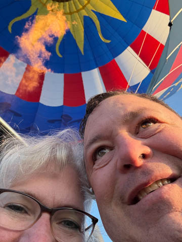 While there are only five balloons in the picture on the left, we counted ten or so scattered over the horizon. Saw a deer below in the field.