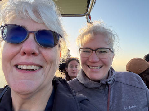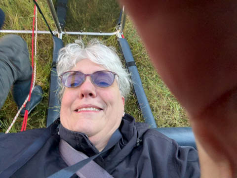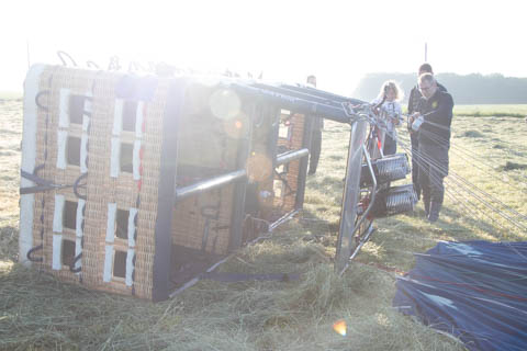 We had enough velocity over the ground when we landed to bounce hard a couple times then tip over, which help smash Nancy's glasses into her head, but which made it a bit easier for Cathy to get out of the gondola.