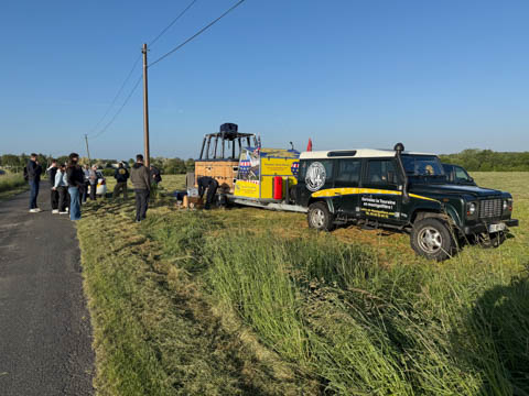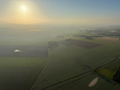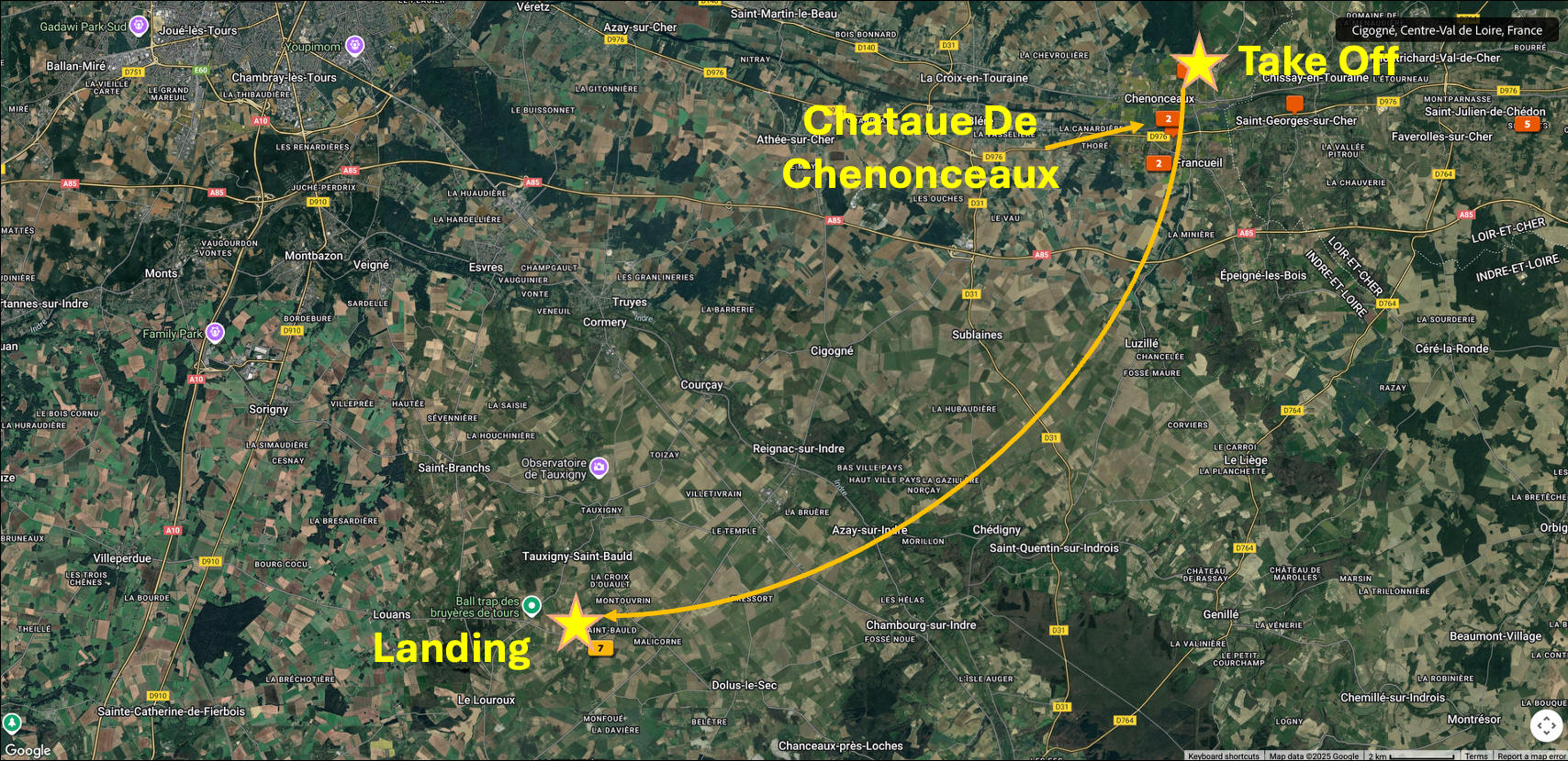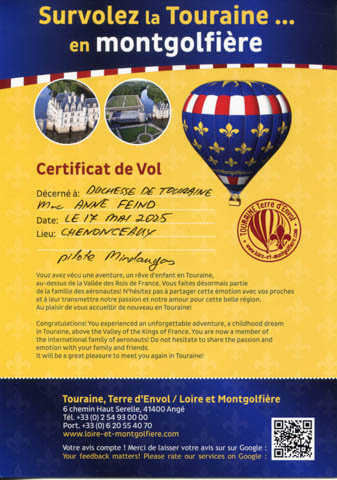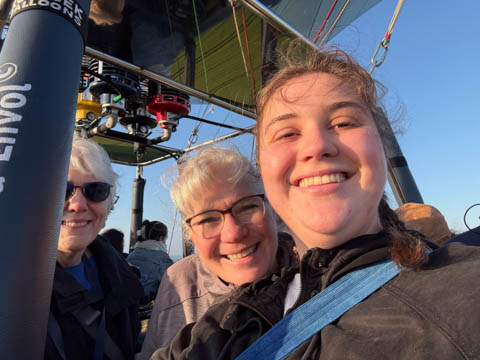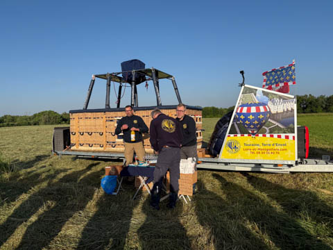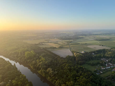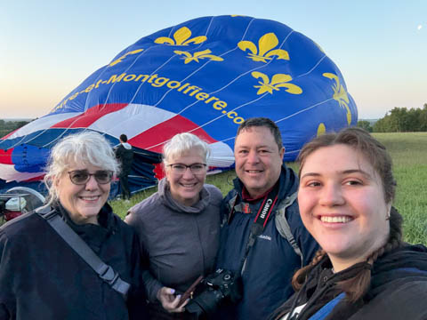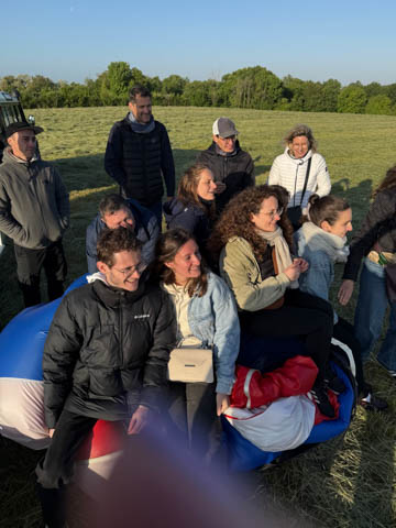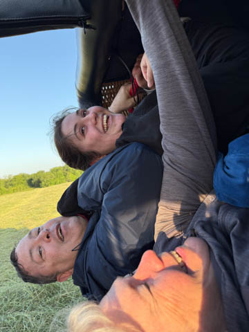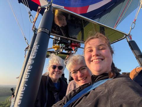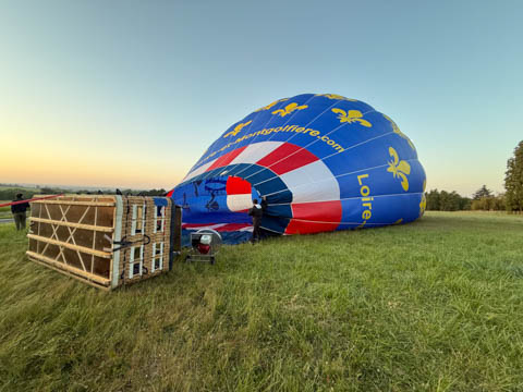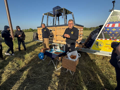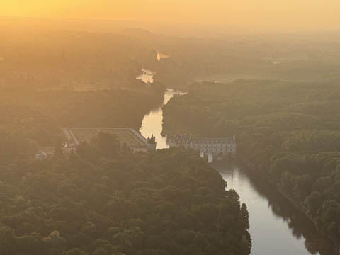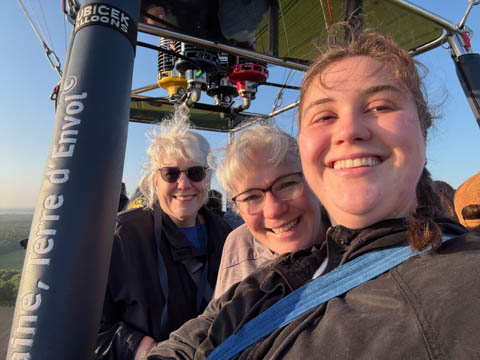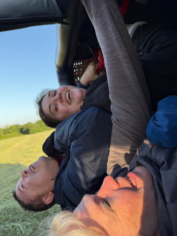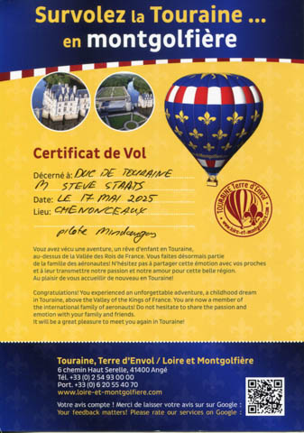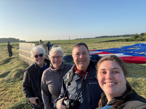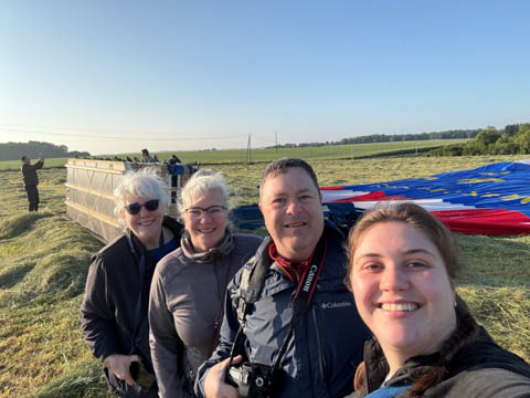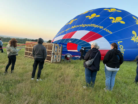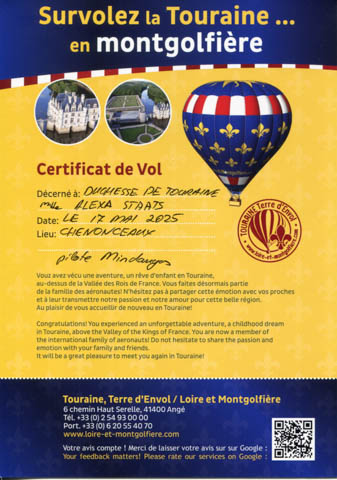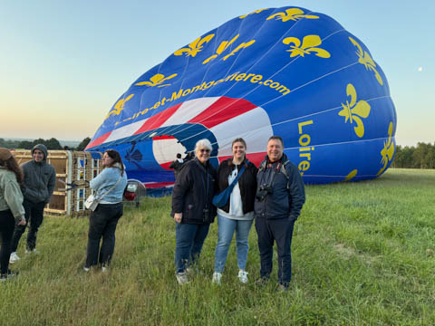 May 2025 (Part 05) France Trip: Day 2: A Hot Air Balloon Ride Over the Loire Valley We wanted to make this trip extra special for Alexa, so we arranged to do something we have all wanted to do for a long time, take a ride in a hot air balloon. This time over the chateaus and grandeur of the Loire Valley. Worried we might have peaked too soon on the trip. https://www.loire-et-montgolfiere.com/fr/accueil/ We arrived at a meeting point at 6 AM and were introduced to our pilot Vengrys Aurimas, who was from Lithuania. We then drove in their van to a take-off point upwind of the Chateau De Chenonceaux. In all, we spent over an hour in the air and traveled right at 16 miles in a south-westerly direction. We flew over several wonderful farms and small towns, and even a smaller chateau just before our landing.