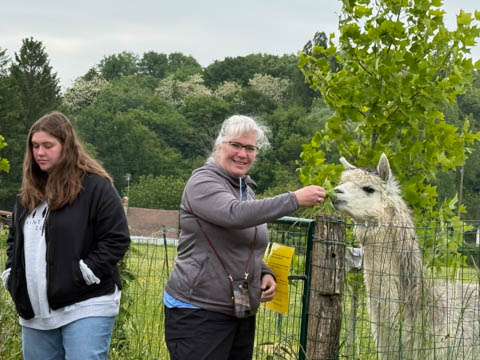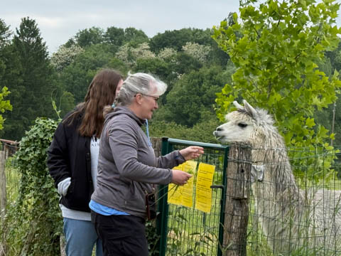 As the girls decided they wanted a T-Shirt, we followed the team back to their office, where we discovered llamas and some beautiful flowers.