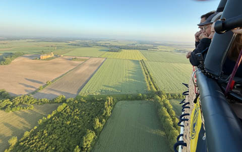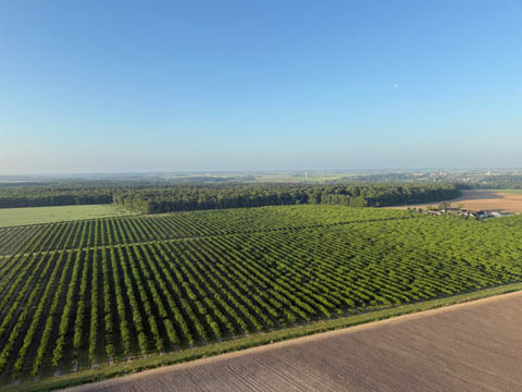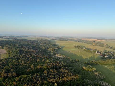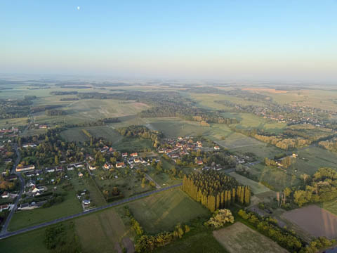 We could see several other balloons rising to the north, much farther away. Our guide commented that they might not get as close to the chateau, as the wind would likely move them around a lot more in relation to the chateau.