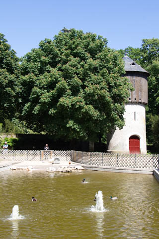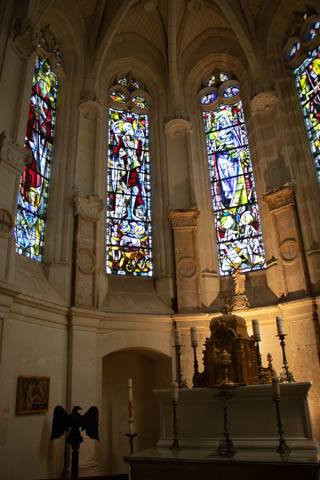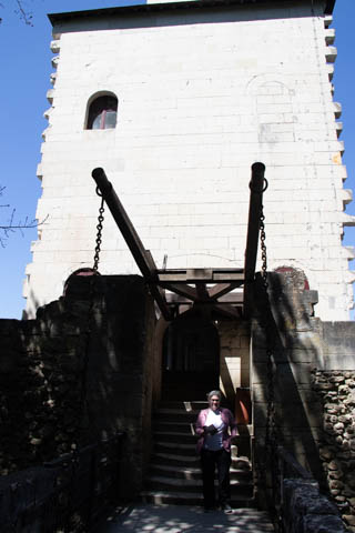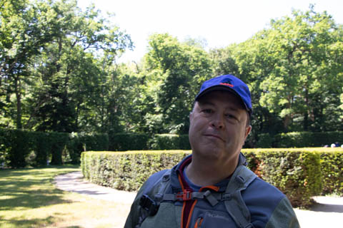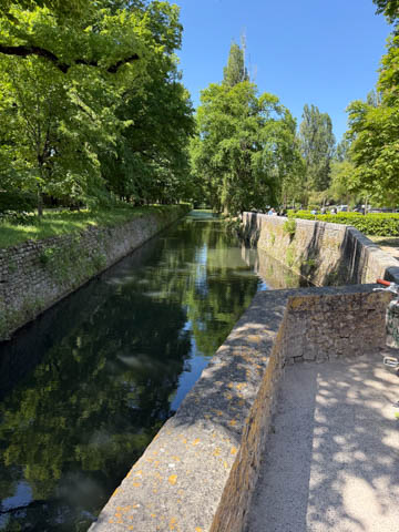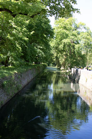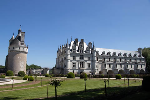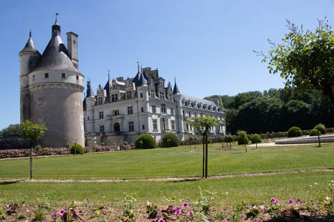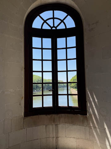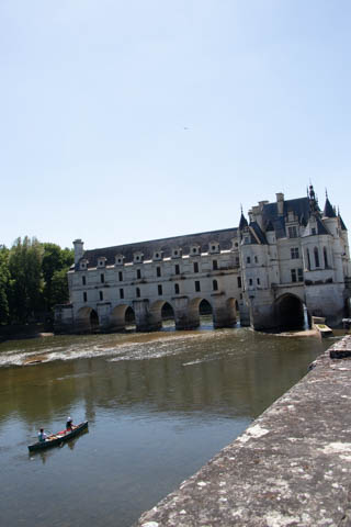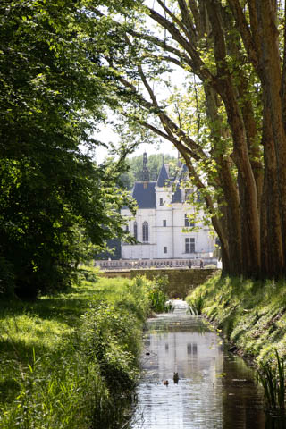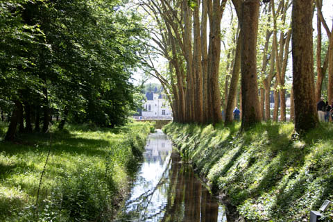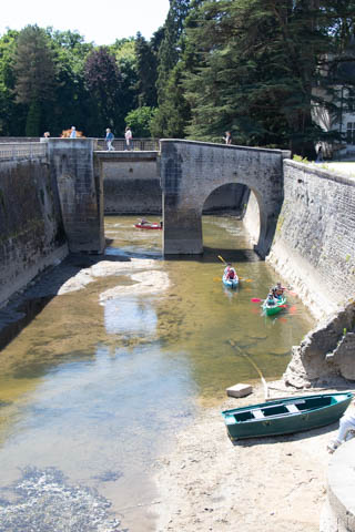 A couple quick pictures from the outside as we departed. Managed to take a quick walk into the gardens on the east side to look back at the chateau from upriver. There was a small group in a canoe and kayaks going through the bridge, then circling back through the moat to come back around again.