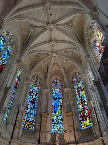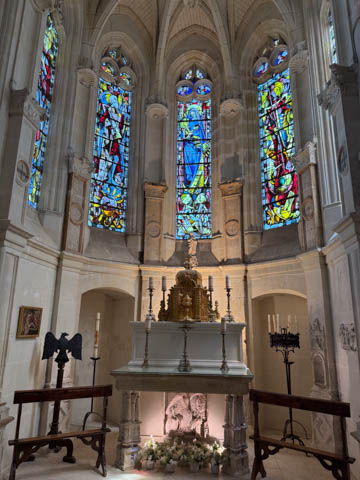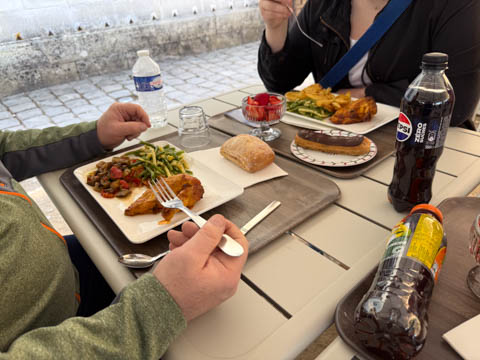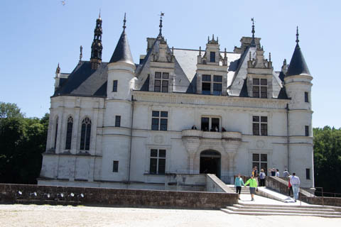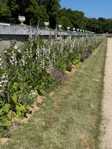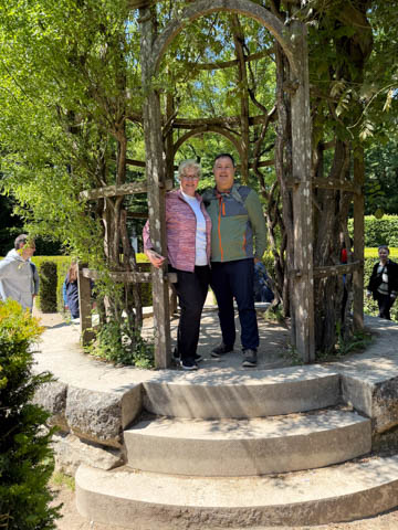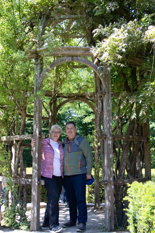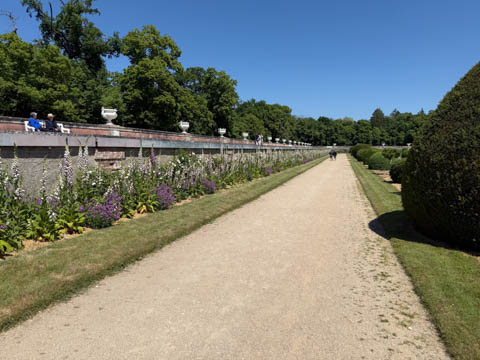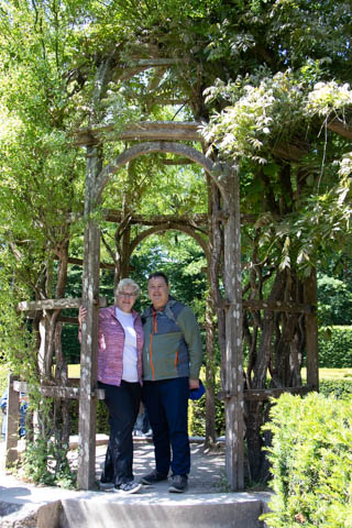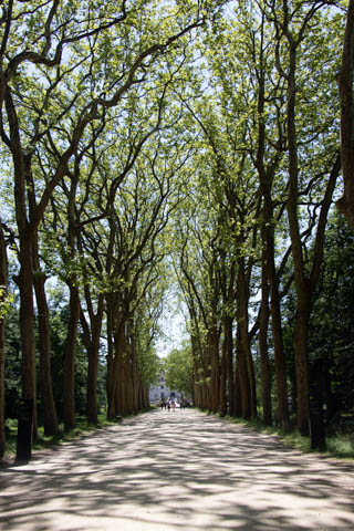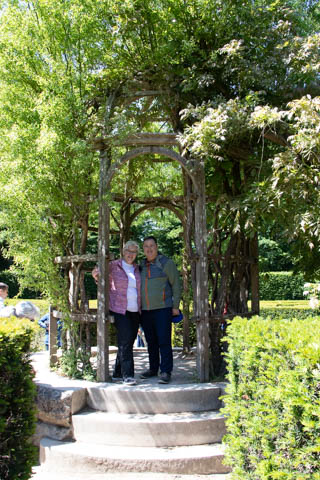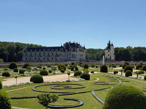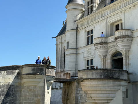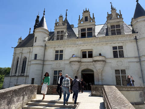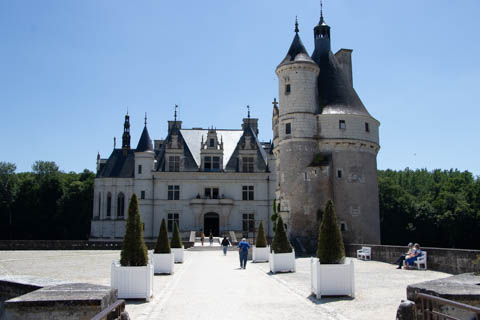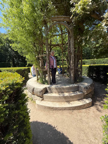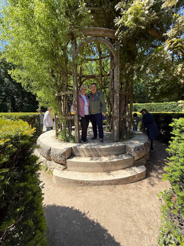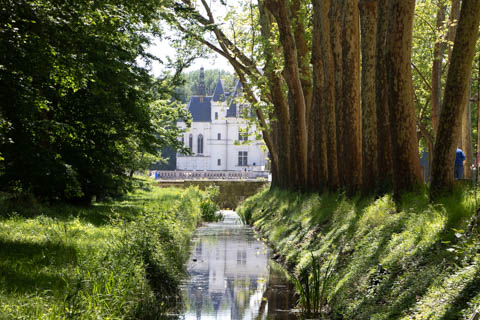 May 2025 (Part 06) France Trip: Day 2: Chateau De Chenonceau After the balloon ride, we headed back to our hotel to clean up, then went back out to go to Chateau De Chenonceau which spans the river Cher about 28 miles upriver of where it joins the Loire River. This is considered one of the most beautiful French chateaus and the most visited chateau after Versailles. The estate dates back to the eleventh century, but the original château was torched in 1412 to punish the owner, Jean Marques, for an act of sedition. He rebuilt a château and fortified mill on the site in the 1430s. Thomas Bohier, Chamberlain to King Charles VIII of France, purchased the castle in 1513, demolishing it except for the original keep. He built an entirely new residence between 1515 and 1521, using it to host French nobility including King Francis I twice. The crown seized the estate for unpaid debts in 1535, and Henry II later gifted it to his mistress, Diane de Poitiers in 1547. She added the arched bridge over the river and had the extensive gardens built. After King Henry II died in 1559, his strong-willed widow and regent Catherine de' Medici forced Diane to exchange it for the Château Chaumont. Queen Catherine then made Chenonceau her own favorite residence, adding a new series of gardens, the grand gallery over the bridge, and other extensions. As Regent of France, Catherine spent a fortune on the château and on spectacular nighttime parties. In 1560, the first-ever fireworks display seen in France took place during the celebrations marking the ascension to the throne of Catherine's son Francis II. Upon Catherine's death, in January 1589, the château went to her daughter-in-law, Louise of Lorraine, wife of King Henry III, who wandered around the chateau in mourning clothes for 11 years after the King's assassination. The estate past to King Henry IV and gradually fell out of royal favor, with many of the statues being sold off an eventually winding up in the Louvre. In the mid-1700s, the estate hosted many French Enlightenment figures, and even housed Jean-Jacques Rousseau who was a tutor to the owner's son. The chateau was saved from destruction during the French Revolution because it was the only bridge over the river for many miles. It was later used as a hospital during World War I, was bombed by both the Germans and Allies in World War 2 destroying many of the windows, and provided a vital link for the resistance during the war as it provided a safe bridge to travel between free Vichy France and occupied France as it straddled the demarcation line between the unoccupied and occupied zones. There was a longer walk to the chateau along a tree lined walk flanked by small water channels.