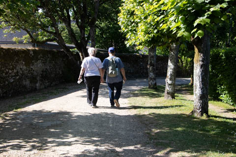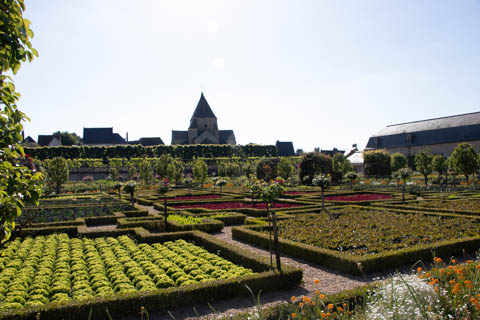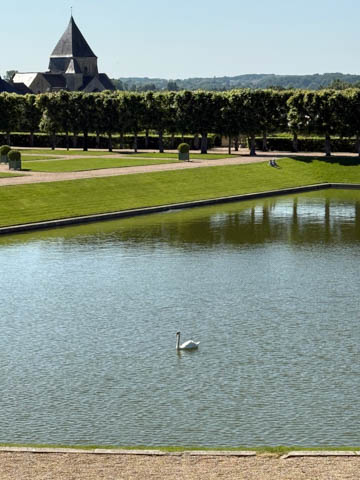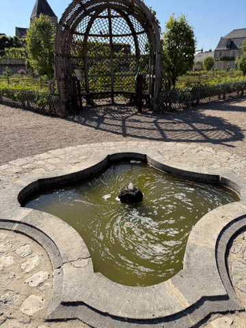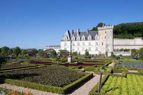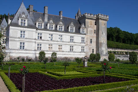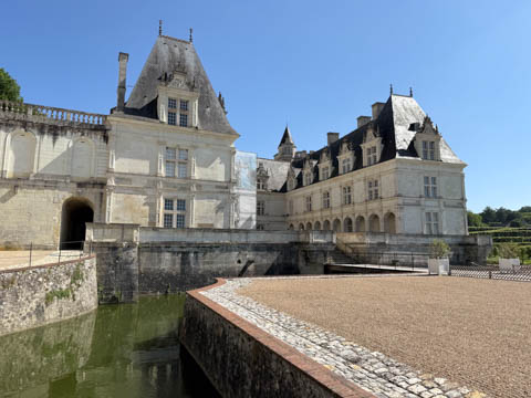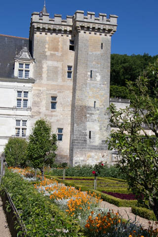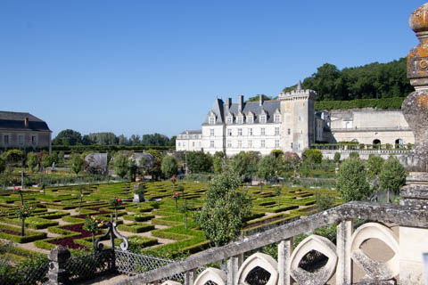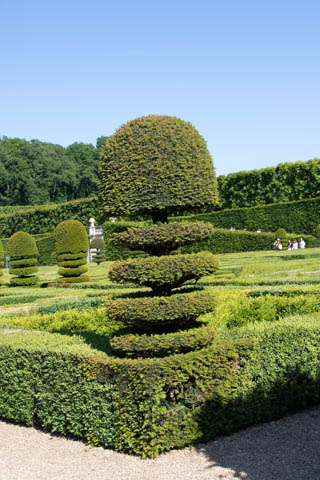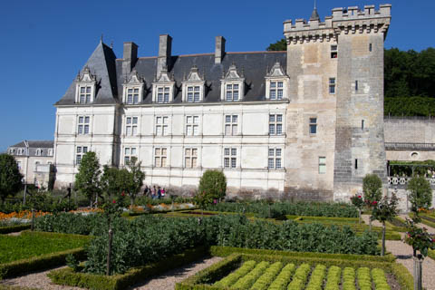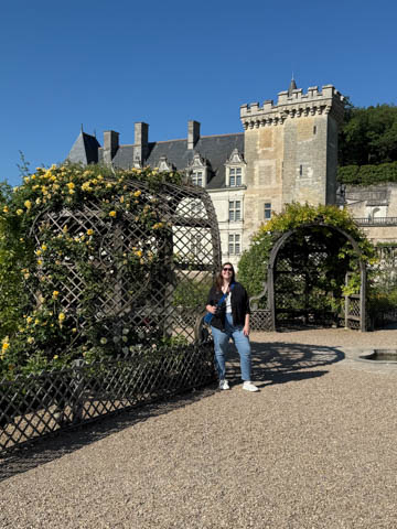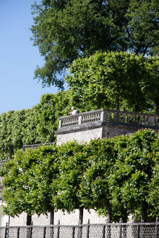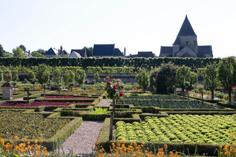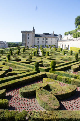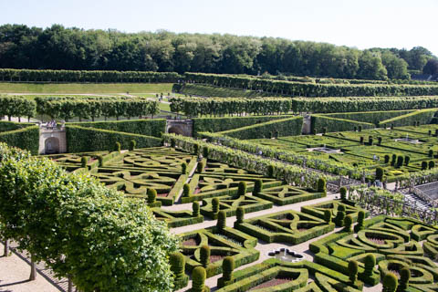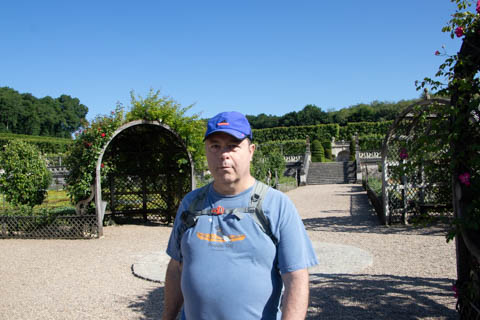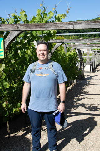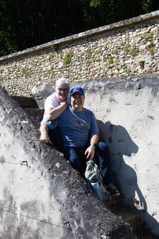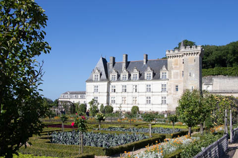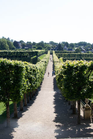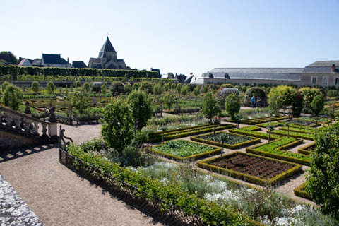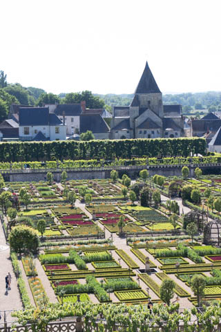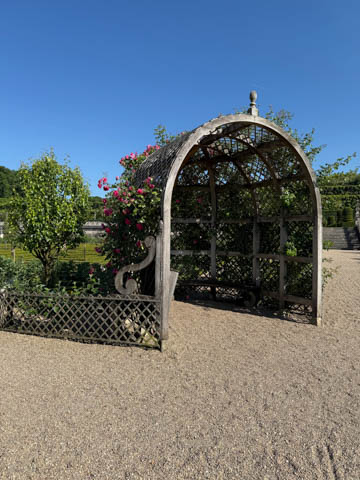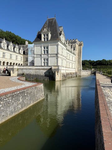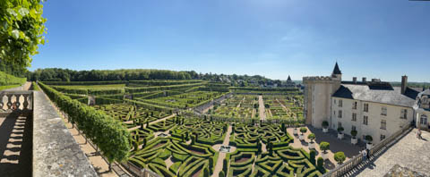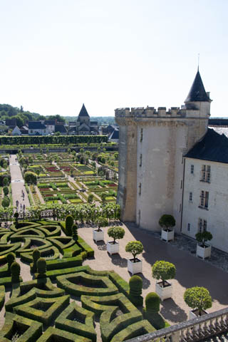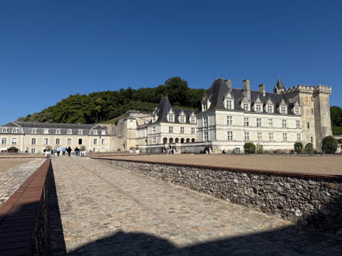 May 2025 (Part 07) France Trip: Day 2: Chateau De Villandry Our next stop on this amazing day was at the Chateau De Villandry, which is famous for its exquisite formal gardens, which is about 45-minutes west of Chenonceaux just upstream of where the Cher River joins the Loire River. This was the sight of a fortress since the 12th century, where Henry II Plantagenet, King of England, signed the Peace of Columbiers in 1189 to recognize his defeat by Phillippe Auguste, King of France. The estate was acquired in the early 16th century by Jean Le Breton, France's Controller-General for War under King Francis I, and a new château was constructed between 1532-1536 around the original 14th-century keep. This was the last of the big chateaus built during the Renaissance. As it was built, it's architecture became more constrained and classical, shedding much of the Italian design influences and adopting a more French style which prefaced the Henry IV style. During the French Revolution the property was confiscated and in the early 19th century, Emperor Napoleon acquired it for his brother Jérôme Bonaparte. The estate was purchased in 1905 by the Carvallo family, who spent a fortune restoring the chateau and the gardens to their Renaissance glory. We opted to visit only the gardens and headed inside. The gardens span seven hectares of the 15 hectare estate, bordered by a forested hill, the village, and the flood plains of the Cher River. Cathy opted for a route without stairs, while the the girls headed to the left and started climbing up the side of a hill to an overlook. Steve took a circuitous route to join them.