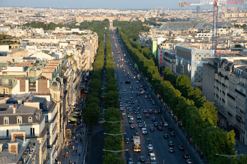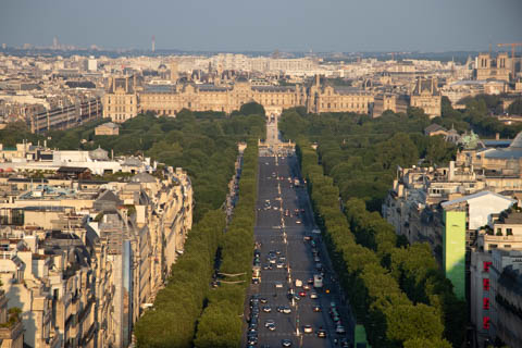 Here is the view to the east-southeast along the Avenue de Champs-Elysies which ends at the Place de la Concorde and the Musee du Louvre.