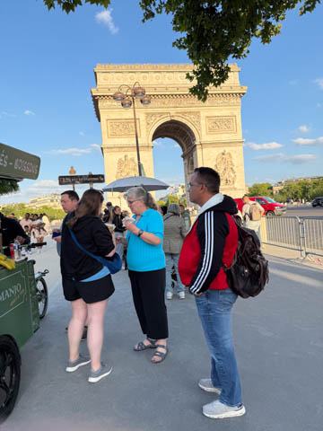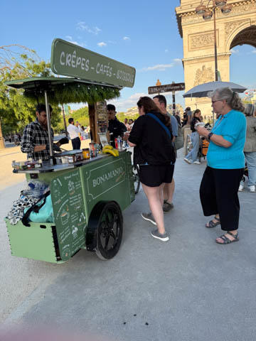 After dropping the car, we walked toward the Arc de Triomphe. We stopped in a couple restaurants, but realized we just didn't have time for dinner. We then saw a street vendor and got several fantastic crepes for dinner.