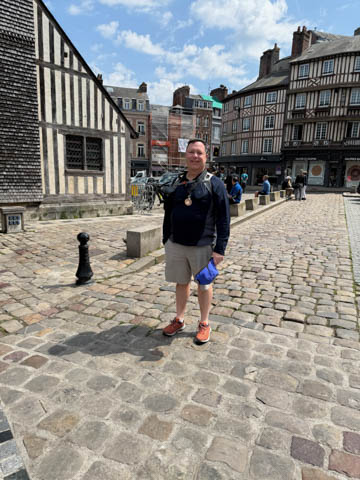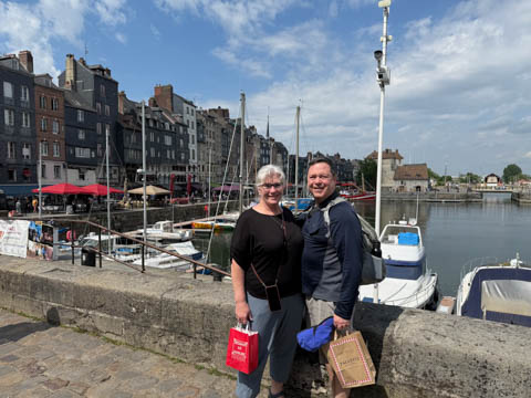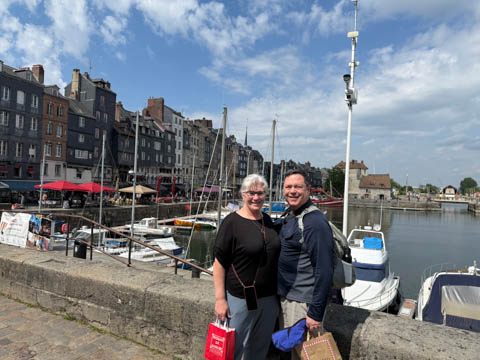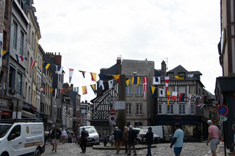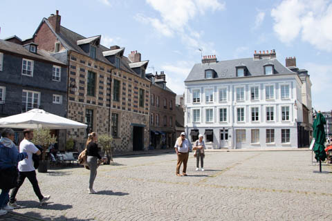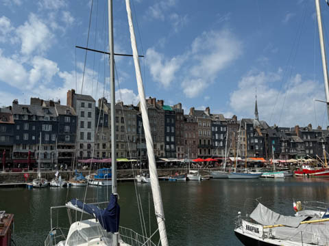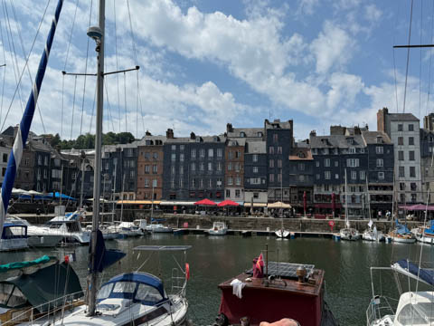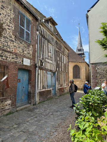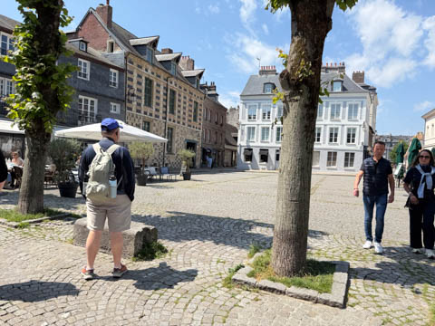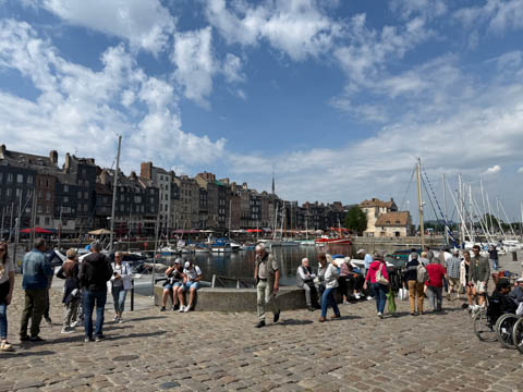 After lunch, we headed toward the coastal port town of Honfleur which is situated at the seine estuary across from the larger commercial port of La Havre. Our bus let us off near a memorial to the Allied Troops who died in the liberation of Normandy and Honfleur, which was liberated on August 24, 1944..