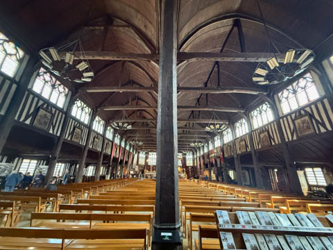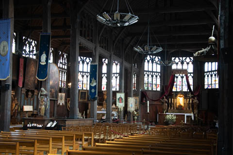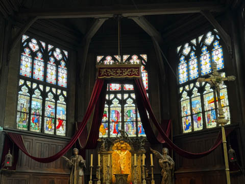The Sainte-Catherine church, which has a bell tower separate from the principal building, is the largest wooden church in France.