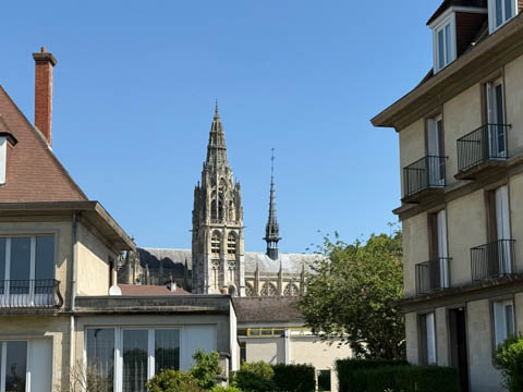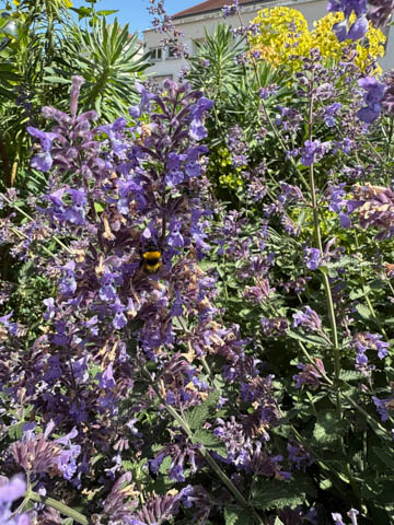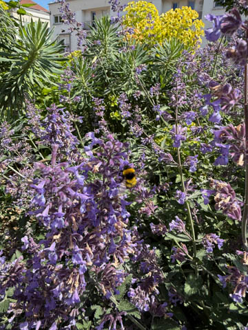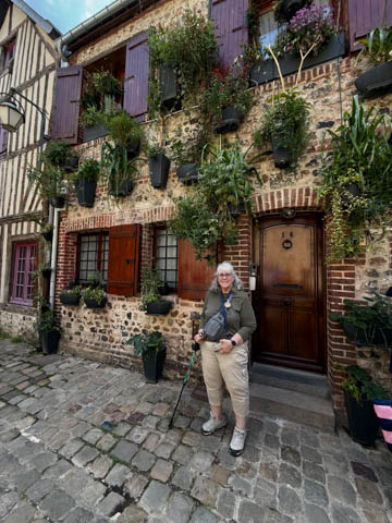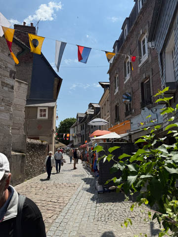 May 2025 (Part 17) France Trip: Day 7: Les Andelys and Honfluer After the abbeys, we headed back to the cruise ship for lunch, stopping to take some pictures on our walk back (mostly of bees and flowers)