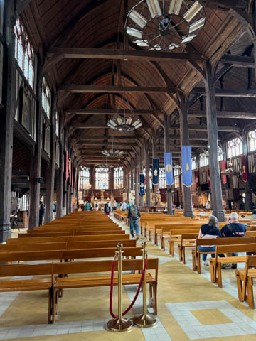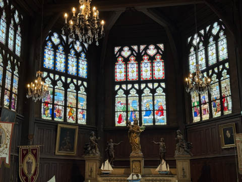 Our route took us through some winding streets until we popped out by the harbor on a corner with a small church.