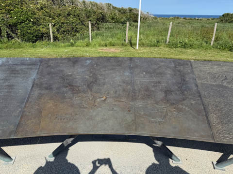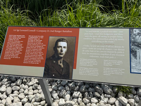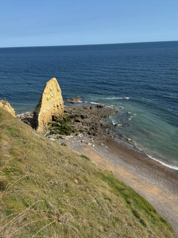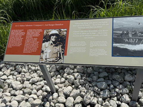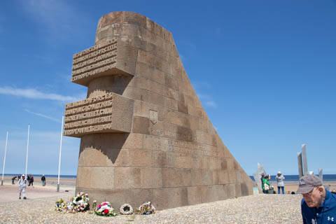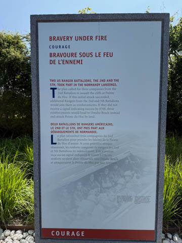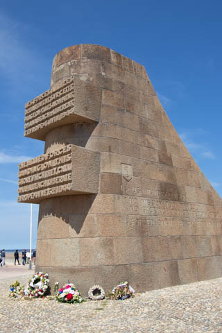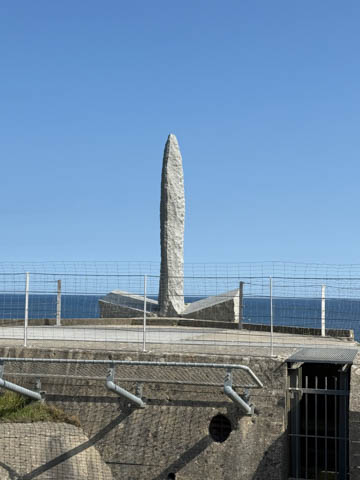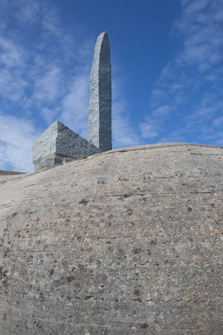 There was a monument to the Rangers at the point. The monument consists of a simple granite pylon positioned atop a German concrete bunker with tablets at its base inscribed in French and English
