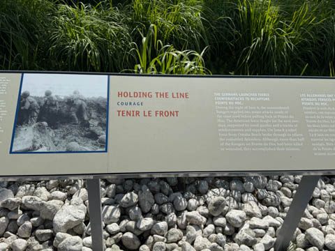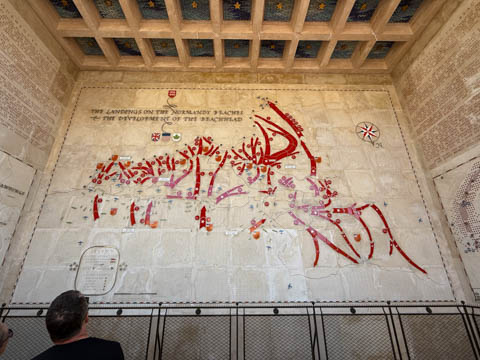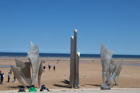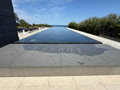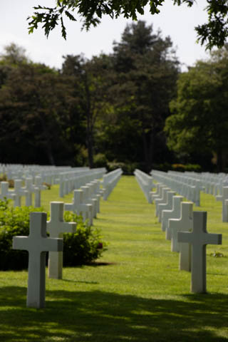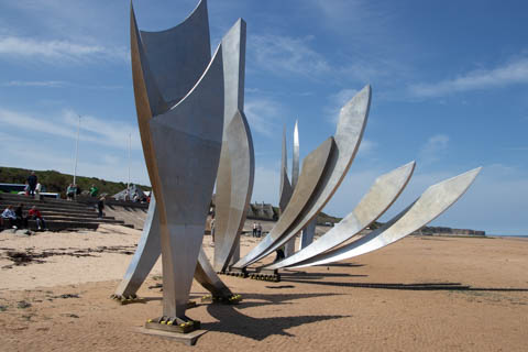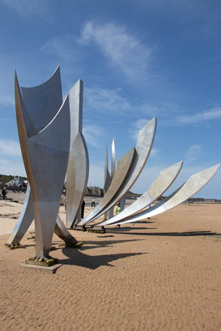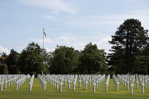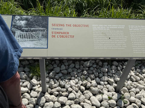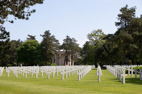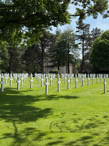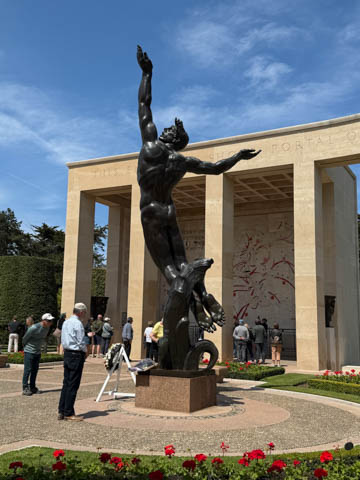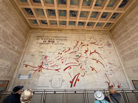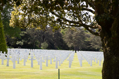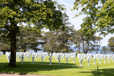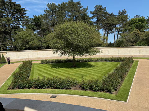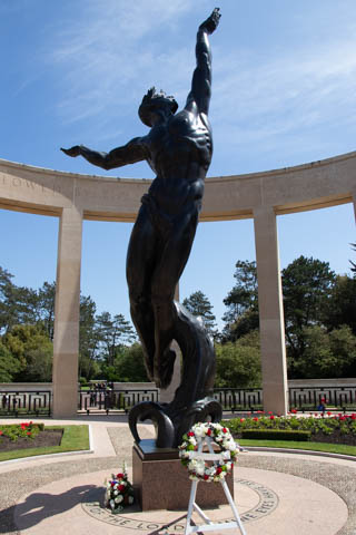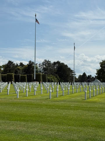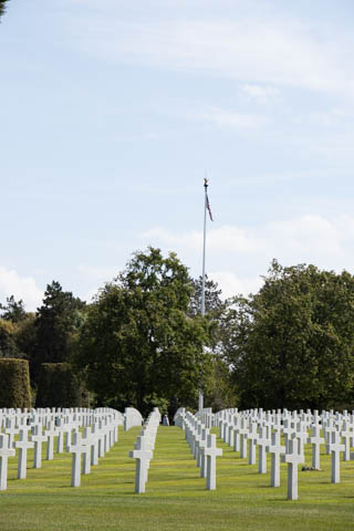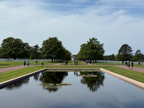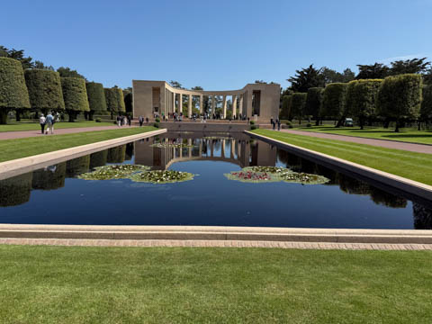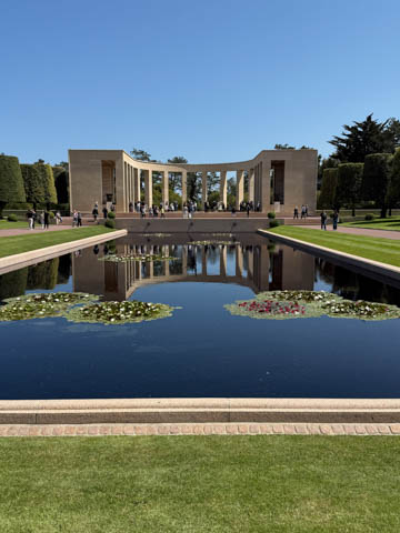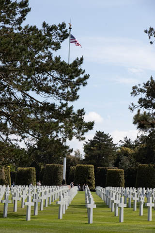 Our last stop of the day was at the nearby Normandy American Cemetery and Memorial in Colleville-sur-Mer overlooking Omaha Beach. These hallowed grounds preserve the remains of nearly 9,400 Americans who died during the Allied liberation of France. The dead include three Medal of Honor recipients and forty-five sets of brothers lying side by side. Every year over a million visitors come to pay their respects to the fallen and learn more about the crucial events that happened here. There were a couple memorials and displays on the way into the cemetery helping explain the landings.