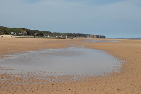 We then went to Omaha Beac, the most heavily defended beach, was assigned to the 1st Infantry Division and 29th Infantry Division. They faced the 352nd Infantry Division rather than the expected single regiment. Strong currents forced many landing craft east of their intended position or caused them to be delayed. For fear of hitting the landing craft, US bombers delayed releasing their loads and as a result most of the beach obstacles at Omaha remained undamaged when the men came ashore. Many of the landing craft ran aground on sandbars, and the men had to wade 50–100m in water up to their necks while under fire to get to the beach. In spite of the rough seas, DD tanks of two companies of the 741st Tank Battalion were dropped 4,600 meters (5,000 yd) from shore; however, 27 of the 32 flooded and sank, with the loss of 33 crew. Some tanks, disabled on the beach, continued to provide covering fire until their ammunition ran out or they were swamped by the rising tide. Casualties at Omaha were around 2,000, the highest of any of the beaches, as the men were subjected to fire from the cliffs above. Problems clearing the beach of obstructions led to the beachmaster calling a halt to further landings of vehicles at 08:30. A group of destroyers arrived around this time to provide fire support so landings could resume. Exit from the beach was possible only via five heavily defended gullies, and by late morning barely 600 men had reached the higher ground. Weakened by the casualties taken just in landing, only a few of the surviving assault troops were able to support clearing the exits off the beach. This caused further problems and consequent delays for later landings. Small penetrations were eventually achieved by groups of survivors making improvised assaults, scaling the bluffs between the most well-defended points. By noon, as the artillery fire took its toll and the Germans started to run out of ammunition, the Americans were able to clear some lanes on the beaches. By the end of the day, two small isolated footholds had been won, which were subsequently exploited against weaker defenses further inland, allowing the tenuous beachhead to be expanded over the following days, and the D-Day objectives for Omaha were accomplished by 9 June. By the end of the first day, confused hard-fought individual actions pushed the foothold out two and a half kilometers (1.6 miles) deep in the Colleville area to the east, less than that west of St. Laurent, and an isolated penetration in the Vierville area. Pockets of enemy resistance still fought on behind the American front line, and the whole beachhead remained under artillery fire. Only 100 of the 2,400 tons of supplies scheduled to be landed on D-Day were landed. An accurate figure for casualties incurred by V Corps at Omaha on 6 June is not known; sources vary between 5,000 and over 6,000 killed, wounded, and missing with the heaviest losses incurred by the infantry, tanks and engineers in the first landings. Only five tanks of the 741st Tank Battalion were ready for action the next day. The German 352nd division suffered 1,200 killed, wounded and missing; about 20% of its strength The foothold gained on D-Day at Omaha, itself two isolated pockets, was the most tenuous across all the D-Day beaches. Still they pushed on, deliberately sinking surplus cargo ships on the second day to form an artificial breakwater and, while still less than planned, 1,429 tons of stores were landed that day. Once the beachhead had been secured, Omaha became the location of one of the two Mulberry harbors, prefabricated artificial harbors towed in pieces across the English Channel and assembled just off shore. Construction of 'Mulberry A' at Omaha began the day after D-Day with the scuttling of ships to form a breakwater. By D+10 the harbor became operational when the first pier was completed; LST 342 docking and unloading 78 vehicles in 38 minutes. Three days later the worst storm to hit Normandy in 40 years began to blow, raging for three days and not abating until the night of June 22. The harbor was so badly damaged that the decision was taken not to repair it; supplies being subsequently landed directly on the beach until fixed port facilities were captured. In the few days that the harbor was operational, 11,000 troops, 2,000 vehicles and 9,000 tons of equipment and supplies were brought ashore. Over the 100 days following D-Day more than 1,000,000 tons of supplies, 100,000 vehicles and 600,000 men were landed, and 93,000 casualties were evacuated, via Omaha The first and lasting impression we had was simply how big the beach was, both in depth and breadth. The entire invasion targeted a 80-kilometer (50 mi) stretch of the Normandy coast which was divided into five sectors: Utah, Omaha, Gold, Juno, and Sword. Omaha Beach alone covered 8 km (5 mi) of this front. Omaha Beach provided a vital link to the more accessible landings at the British beaches to the east (Gold was the next beach), which were on the other side of a river estuary, and Utah to the west, which would have then been much easier to isolate without Omaha. Omaha was bounded at either end by large rocky cliffs. The crescent-shaped beach presented a gently sloping tidal area averaging 300 m (330 yd) between low and high-water marks. Above the tide line was a bank of shingle 2.5 m (8 ft) high and up to 15 m (49 ft) wide in places. Today at Omaha jagged remains of the harbor can be seen at low tide. The shingle bank is no longer there, cleared by engineers in the days following D-Day to facilitate the landing of supplies. The beachfront is more built-up and the beach road extended, villages have grown and merged, but the geography of the beach remains as it was and the remains of the coastal defenses can still be visited. In 1988, particles of shrapnel, as well as glass and iron beads resulting from munitions explosions were found in the sand of the beach, and the study of them estimated that those partic