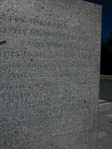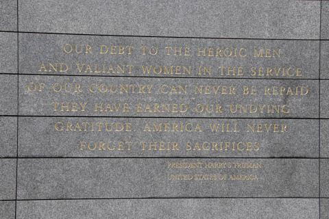 There was an inscription with a quote from FDR, "For these men are lately drawn from the ways of peace. They fight not for the lust of conquest, they fight to end conquest. They fight to liberate ... they yearn but for the end of battle, for the return to the haven of home."