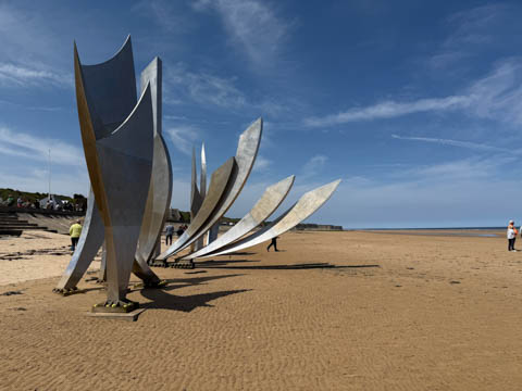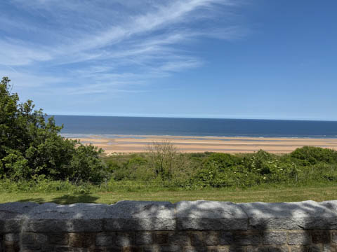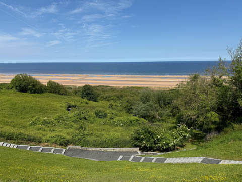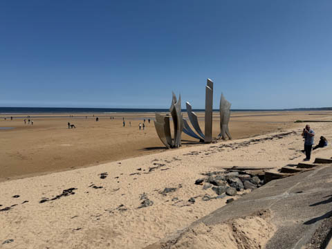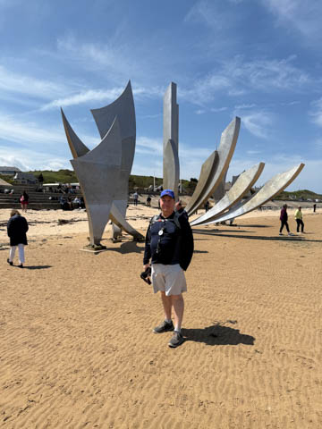 May 2025 (Part 19) France Trip: Day 8: Omaha Beach The next day our excursion was to Omaha Beach. Steve was really looking forward to this. The Normandy landings were the largest seaborne invasion in history, with nearly 5,000 landing and assault craft, 289 escort vessels, and 277 minesweepers participating. Nearly 160,000 troops crossed the English Channel on D-Day, with 875,000 men disembarking by the end of June. Allied casualties on the first day were at least 10,000, with 4,414 confirmed dead and the Germans had 4,000–9,000 casualties (killed, wounded, missing, or captured).