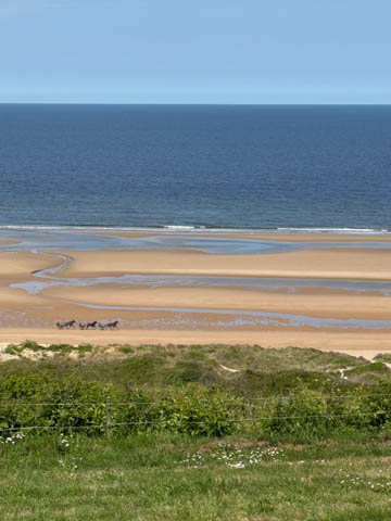 There were several locations allowing a look back down to Omaha Beach. Surprisingly, we could see some rides our with their horses harness racing or cart racing.