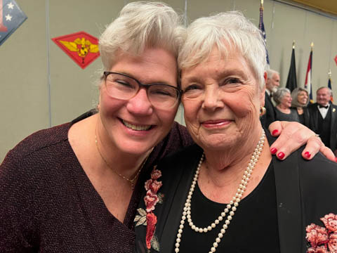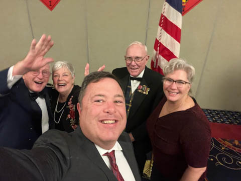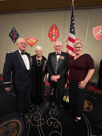 to the Marine Corps Birthday Ball. So glad to see Bill and Ro Boston, along with Aunt Catherine and Barb. Really enjoyed the guest speaker, Cpl Todd Nicely. He had been deployed to Iraq, then was sent to Afghanistan as a platoon sergeant. While deployed, he stepped on a land mine and became one of only two quadruple amputees to have made it off the battlefield and survived. He clearly went to dark place after a while, even admitting he attempted suicide, and was eventually helped by the Focus Marines Foundation, which helped him slowly turn his life around. Bless this young man and his family. We got an "official" group photo. Managed to get a couple more group photos at the end of the evening.