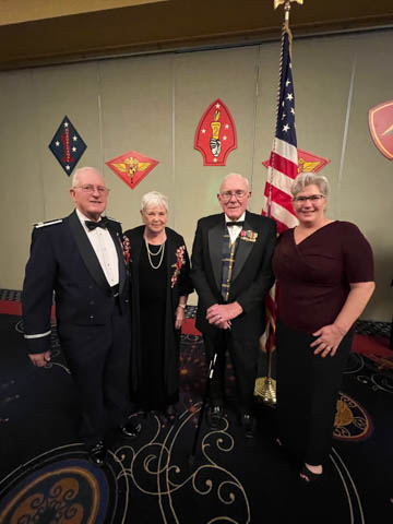 November 2024 (Part 02) Missouri Trip and the 249th US Marine Corp Birthday Ball We headed to Missouri for a long weekend to see Grandpa Bill and go with him to the Marine Corps Birthday Ball. So glad to see Bill and Ro Boston, along with Aunt Catherine and Barb. Really enjoyed the guest speaker, Cpl Todd Nicely. He had been deployed to Iraq, then was sent to Afghanistan as a platoon sergeant. While deployed, he stepped on a land mine and became one of only two quadruple amputees to have made it off the battlefield and survived. He clearly went to dark place after a while, even admitting he attempted suicide, and was eventually helped by the Focus Marines Foundation, which helped him slowly turn his life around. Bless this young man and his family. We got an "official" group photo. Managed to get a couple more group photos at the end of the evening.