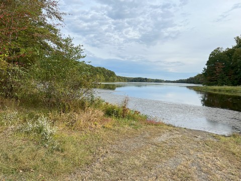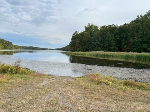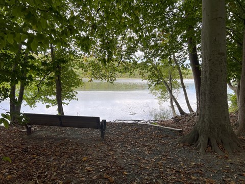 October 2023 (Part 03) Delaware Beach Steve and Andy went to Burke Lake to play disc golf and walk part of the way around the lake. A really nice day. Had to take a picture of Tank's favorite swimming spot. The water was really high.