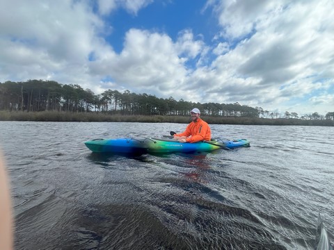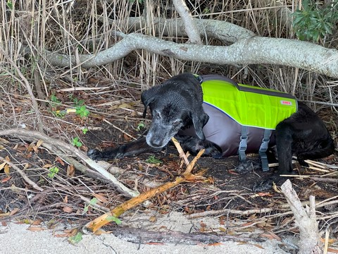 They also headed out to the beach in mid-October. We got there just before sunset, which allows us to confirm a community post from sometime in September that the tree with the osprey nest had come down (again). Uggh. We got dinner at grab-and-go taco and ate of the beach just after dark. We went for a relatively short paddle on Saturday morning as it was really windy with whitecaps in the river. We were surprised at the number of shorebirds we saw, with several herons and even two eagles. They flew off and we soon saw up to seven circling, but they were far enough away and could have been vultures or something else.