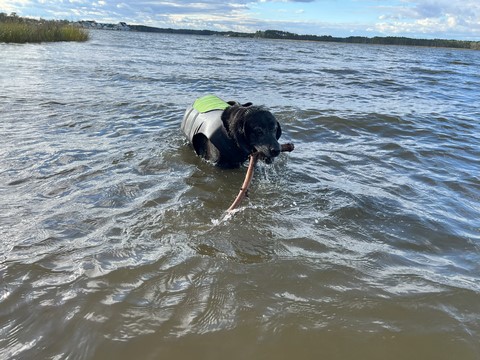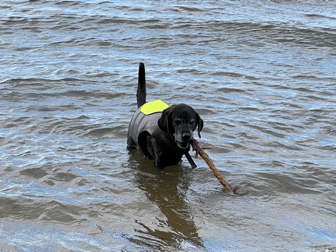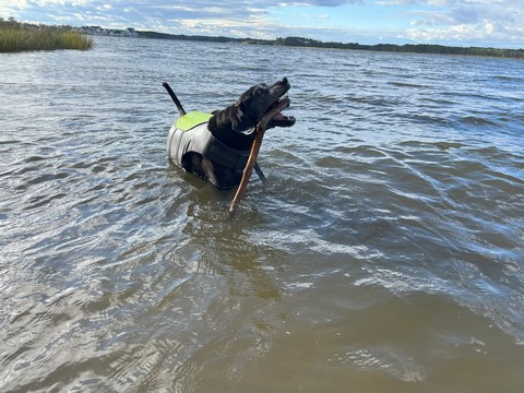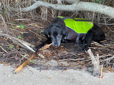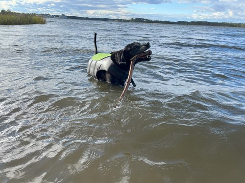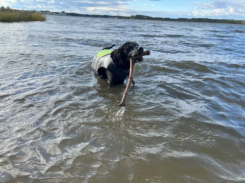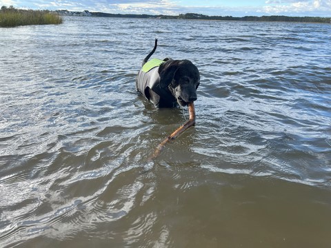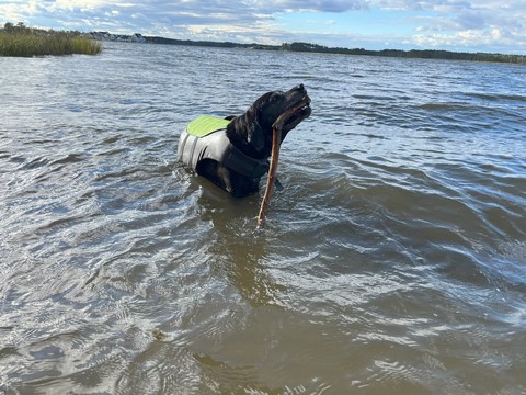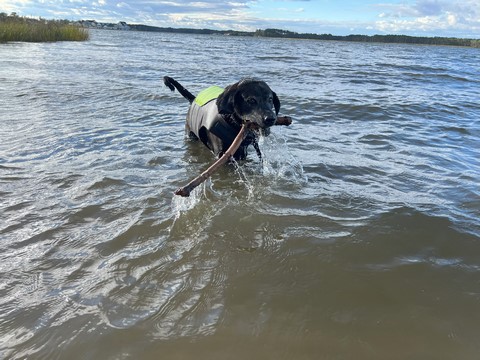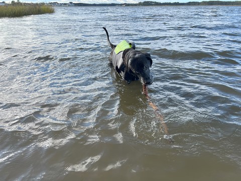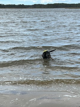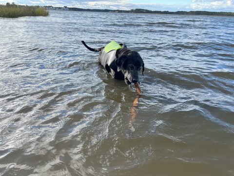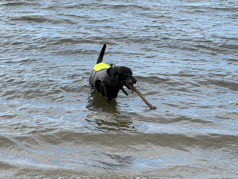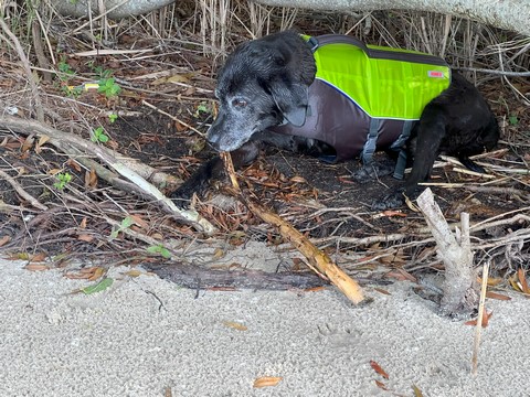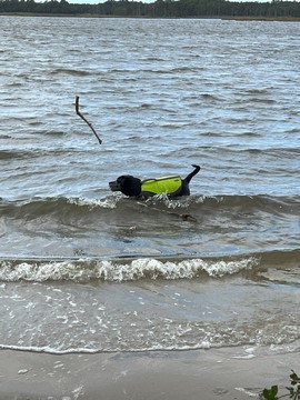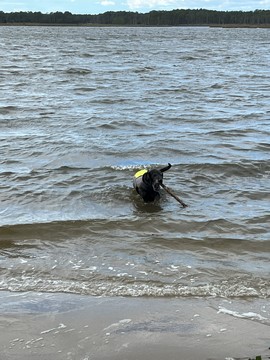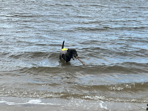 He put the stick down after a bit, allowing Steve to grab it. Tank then ran as fast as he could chasing the stick off the sand and up the grass to the parking lot, trying to grab it whenever it got within a foot or so. This was the easiest we've ever gotten him off the beach.
