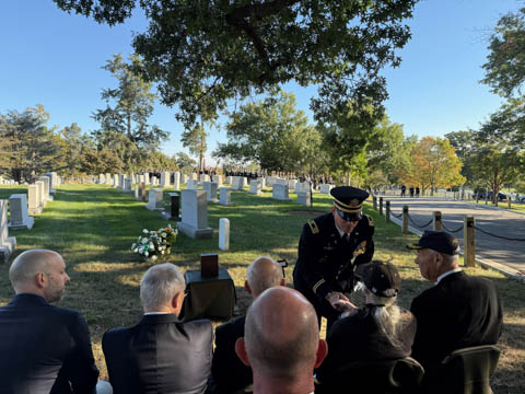 October 2025 (Part 03) Col Banning's Internment Ceremony at Arlington National Cemetery The University of Missouri's alumni associations sent out a call to members near DC that a Missouri alumni and Vietnam veteran, who had passed without family and few friends, was being buried in Arlington. So, we volunteered to attend the ceremony, joining only one person who knew him. The others were from his fraternity, who had sent out a call for members in DC to attend. The Missouri Congressman also sent someone. Col Michael Banning had earned the Silver Star and Air Cross in Vietnam, apparently as a helicopter pilot.
