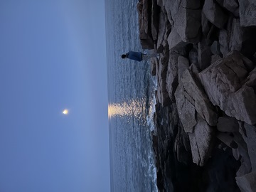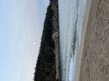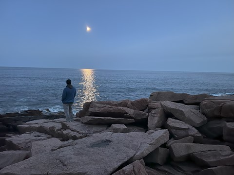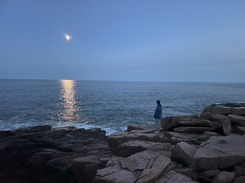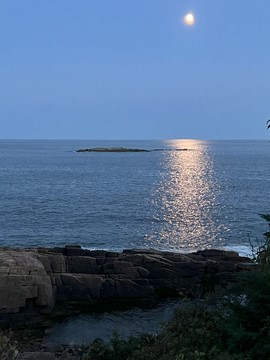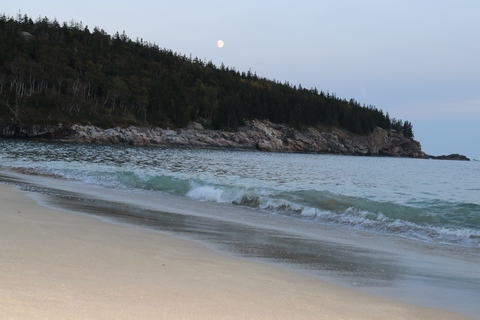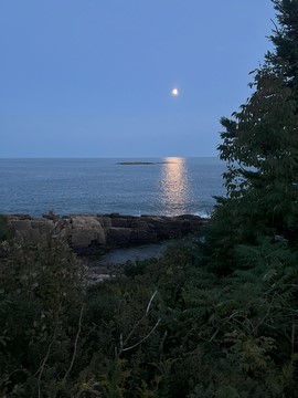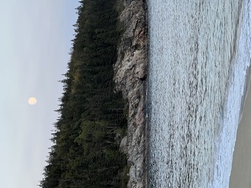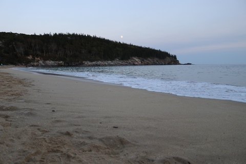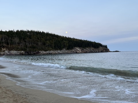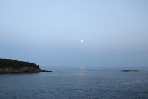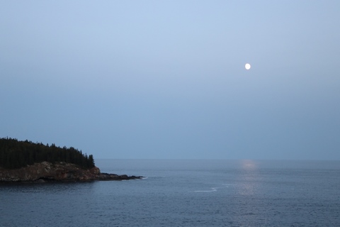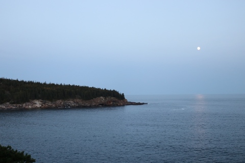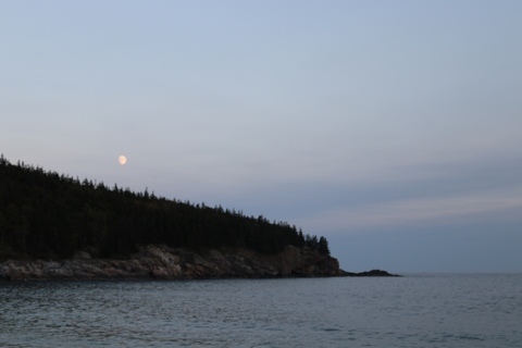 While the sunset was behind the mountains to the west, the moonrise was over open water and Frenchman Bay.