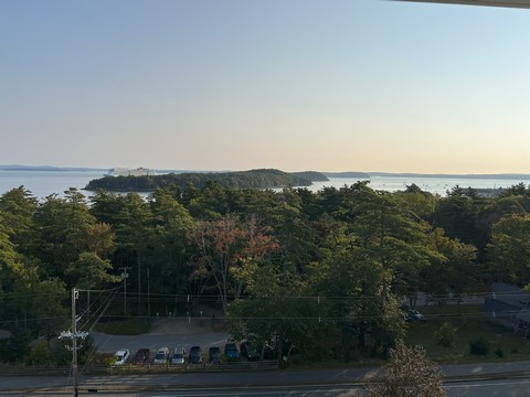 We had an interesting dinner at Havana's, a restaurant a coworker recommended. The food was excellent, but we had a real issue with the service, finally having to go back to the host station after no one had stopped at our table after 30 minutes. They tried to make up for it, but we were pretty hungry and cold (as the only table available was outside) by then. Oh well. Our hotel was just outside of the downtown area of Bar Harbor, which provided a nice overview of Frenchman Bay as we woke up. We also realized there was a large cruise ship in the harbor (and there would be one every day of the trip).